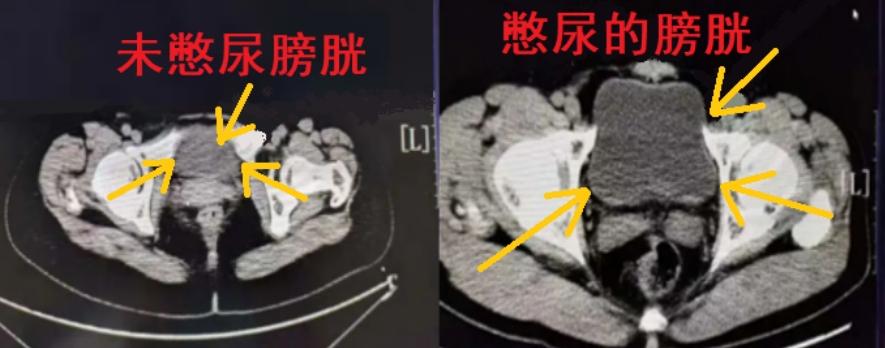 做CT腹部检查喝水能够起到撑开消化道管壁(图一)效果,这样使得管壁解剖结构显示更清晰,喝水憋尿充足也会使膀胱充盈,膀胱充盈后,膀胱腔内的病变和膀胱周围的器官可能会更清晰(图二),形成良好对比,便于放射科医生诊断。