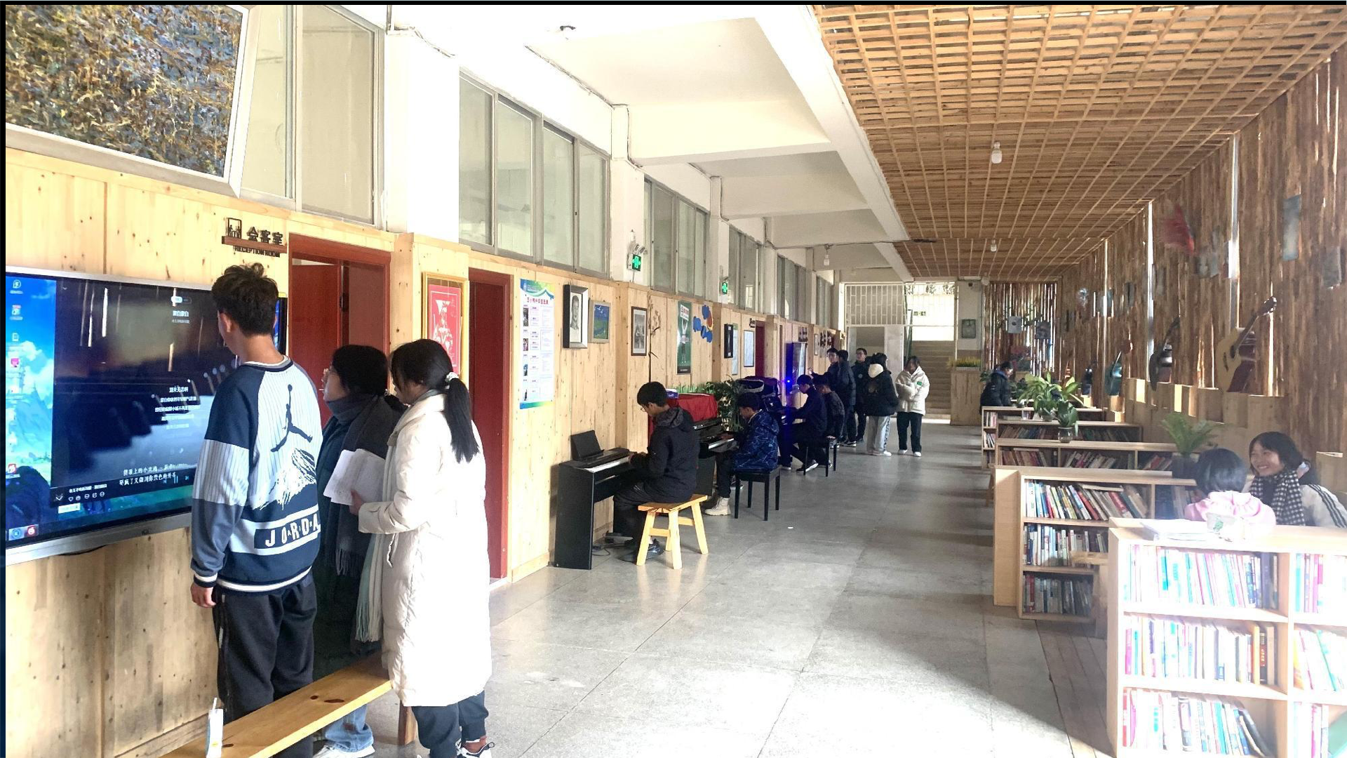 三年前的走廊是这样的,墙面是温暖的、木板的,一体机、钢琴、书,孩子们想干什么,弹琴的、上网的、看书的、聊天的,啥都不干的都有。