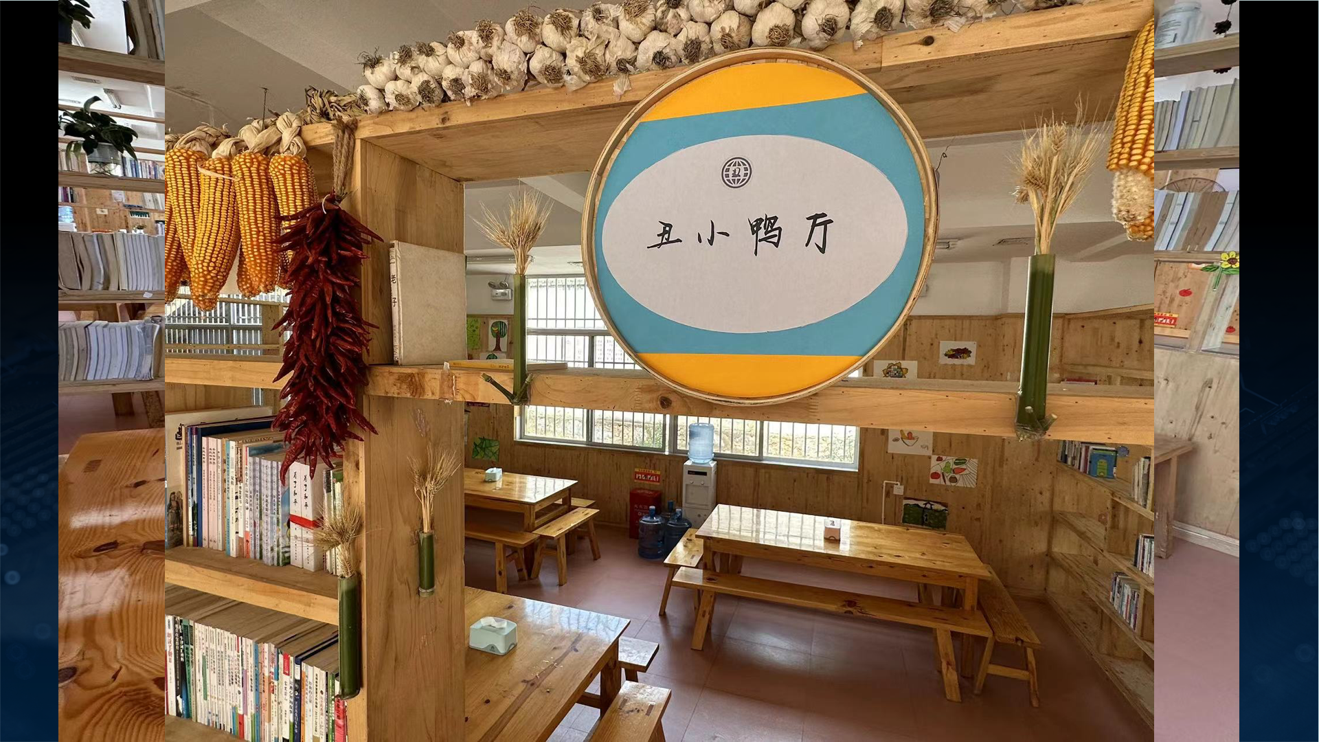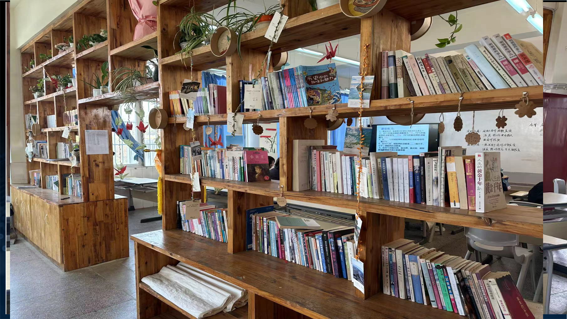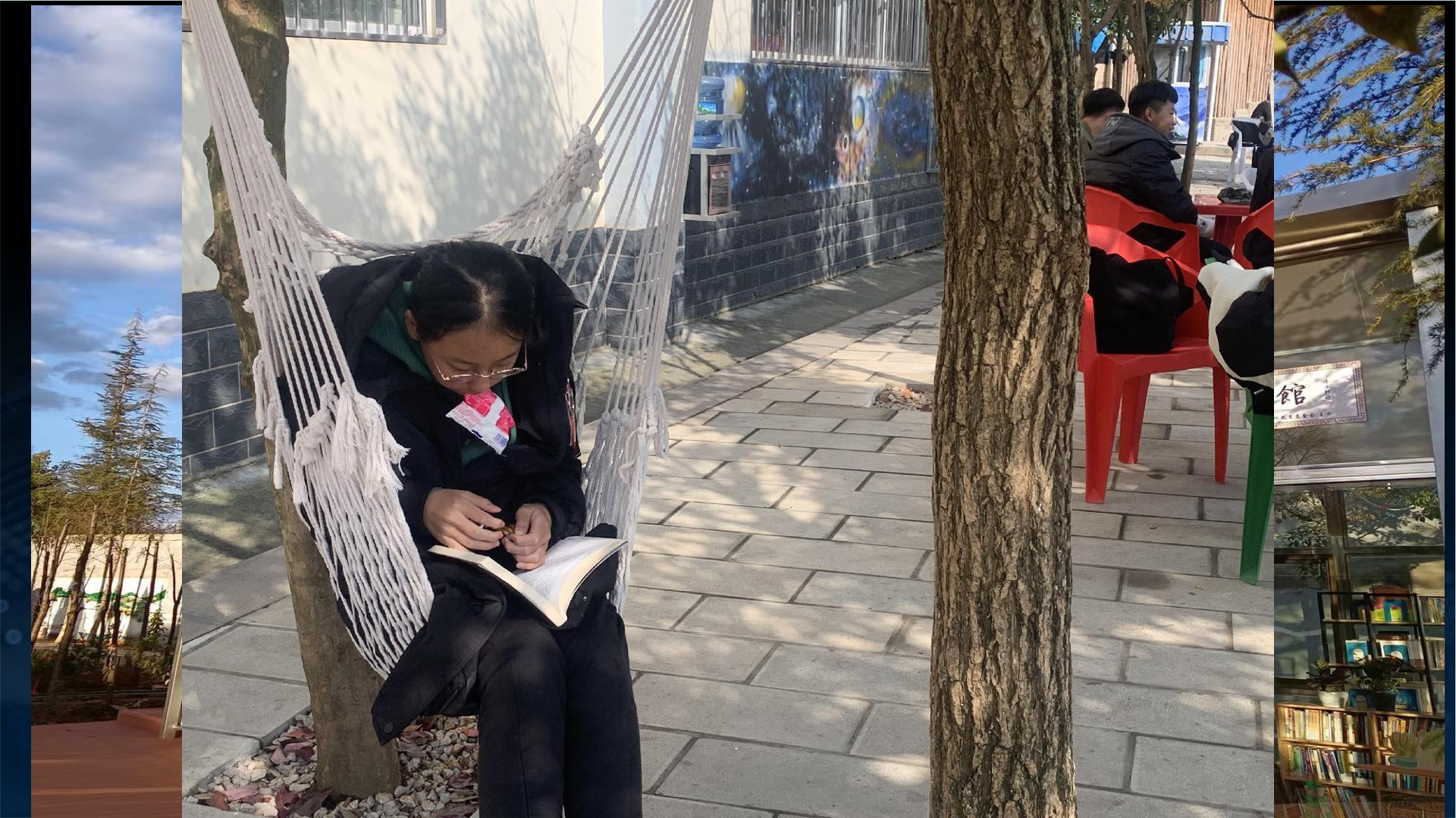 我们看一下,这个是我们丑小鸭中学,任何地方都是书,任何地方都是,任何地方都是看书的孩子,刚刚是操场,这个是教室里面的书,这是食堂。丑小鸭中学的书不用借、不用还、不登记,拿到哪里没有关系,拿回家没有关系,因为就是他自己的,所以任何地方都是是随手可得,那么任何地方都是看书的孩子,为什么,因为学生是主体,学校是他的,关系就这样建构的。