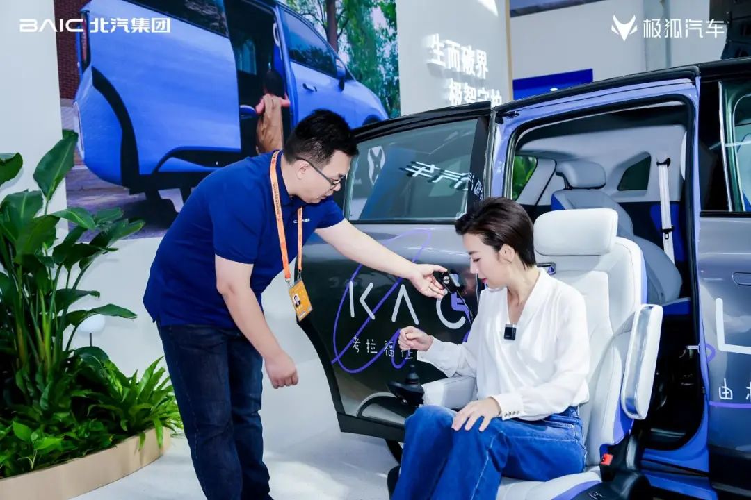 极狐的每一款车,都将品牌“以人为本”的造车哲学包含其中,展台上的极狐考拉福祉版就是一款诠释该理念的车型。这款车搭载车载电动轮椅、石墨烯加热脚垫、弥散式制氧座舱,通过科技创新,将车辆的健康、安全、空间、便利性等做到极致,为用户提供极致守护。