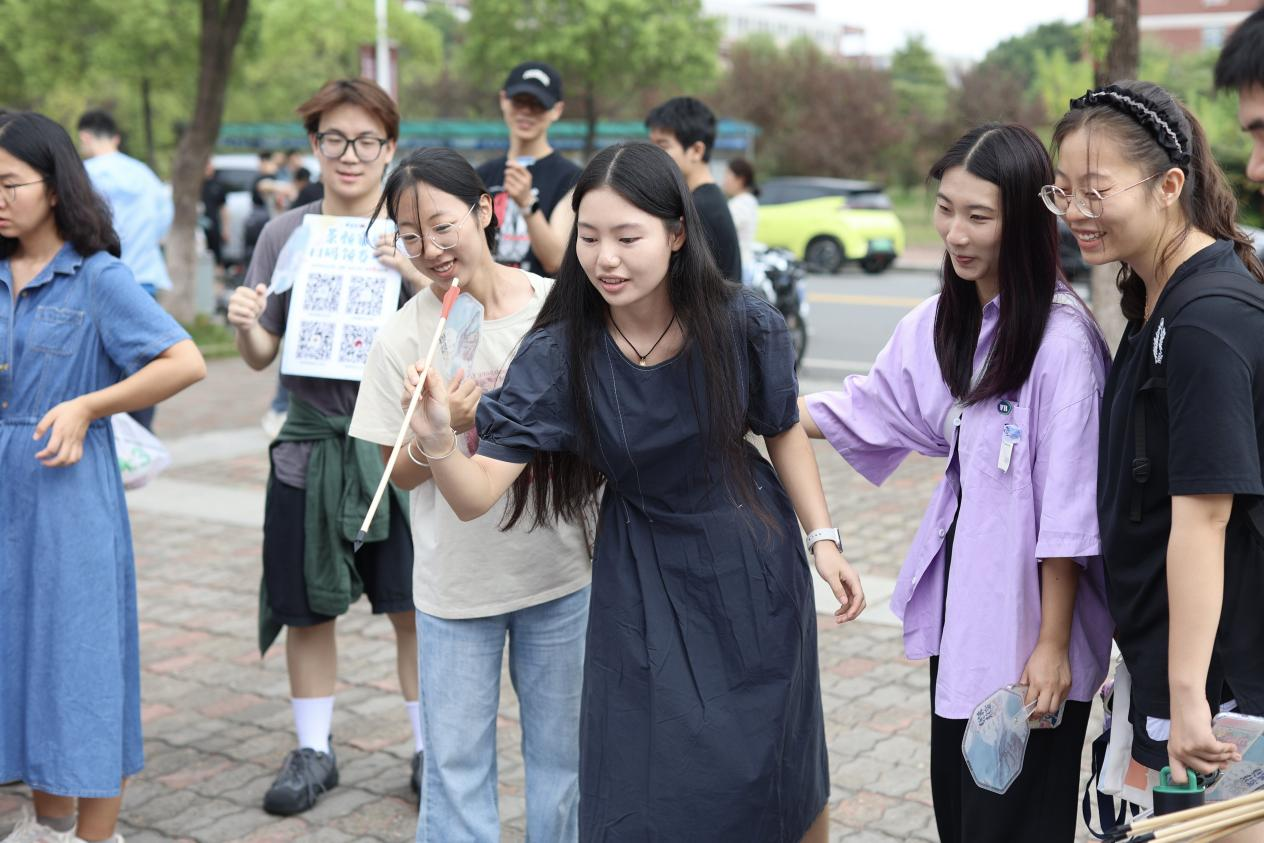 汀香园食堂前的迎新点热闹非凡。 (谌丽慧 摄)