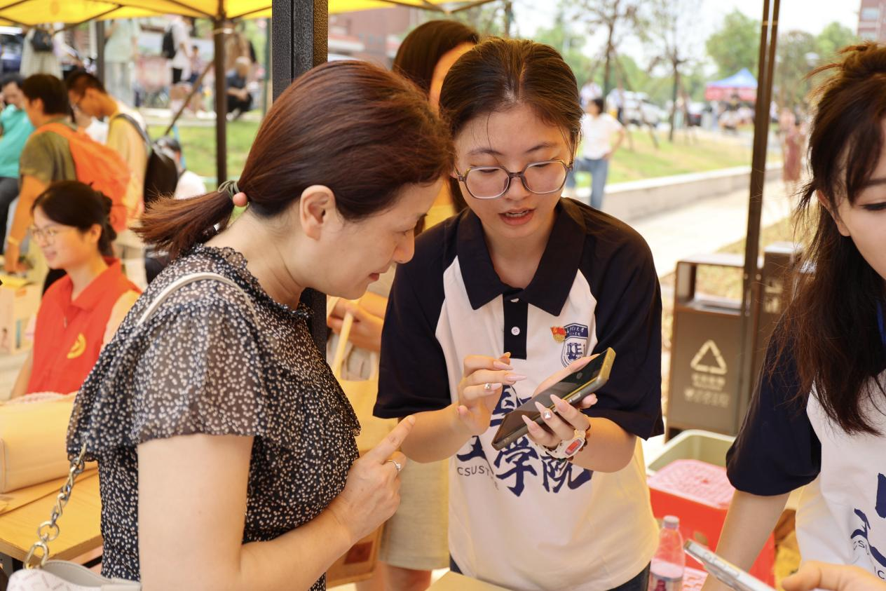 学生志愿者为家长解惑。 (尹谦益 摄)