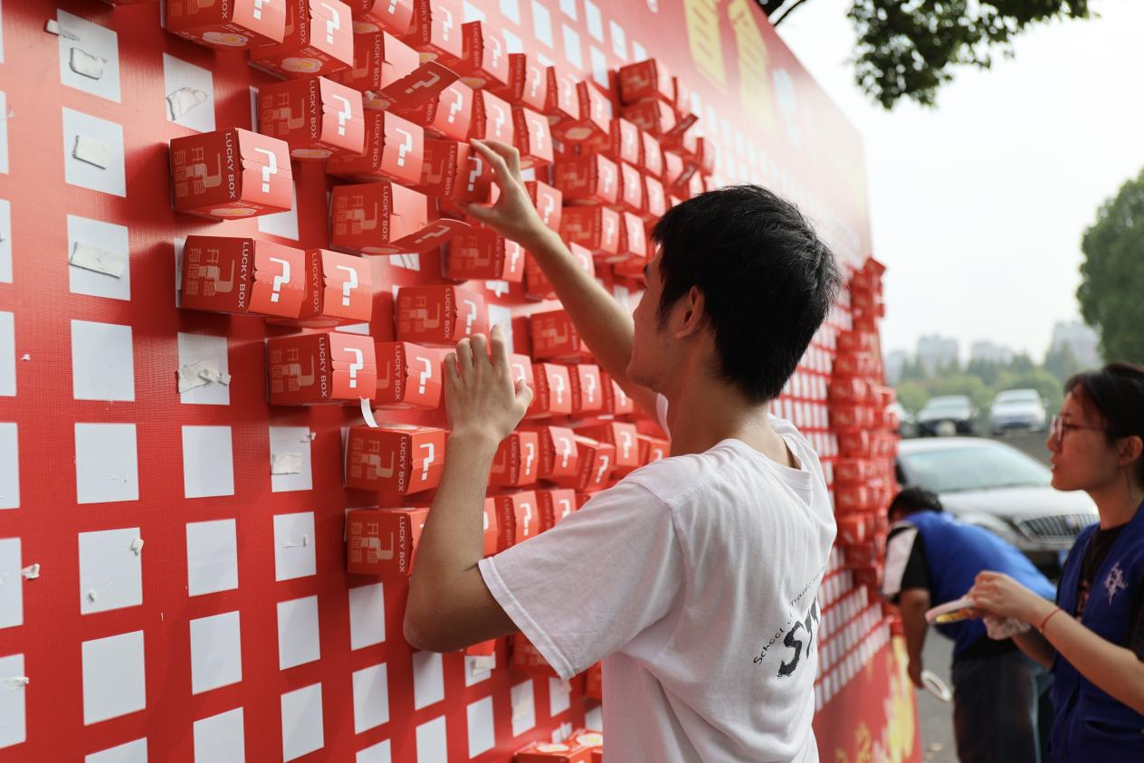 新生参与盲盒抽奖。 (尹谦益 摄)