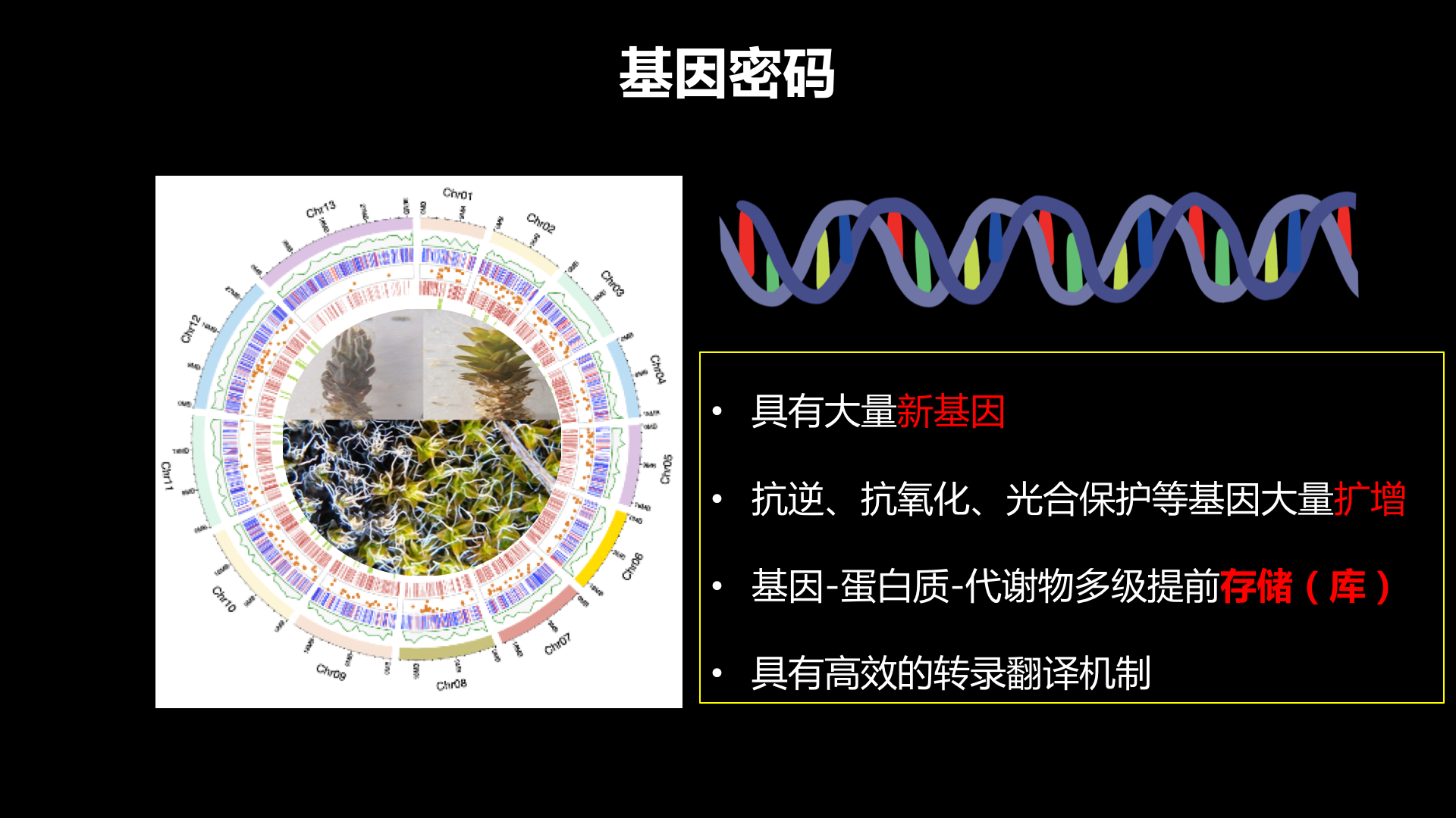 它这么强,它肯定有一些干而不死、冻而不死的基因,如果我们把这些基因密码给到那些不曾具有这么抗性的植物或作物里面,能不能创造出超级植物和我们的超级作物,来应对环境变化和粮食安全呢?