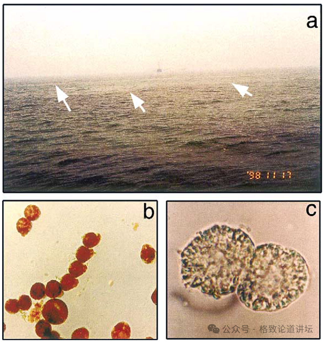 但是当它大量繁殖,或者它在特殊的环境下,它也会相应产生一种有害的藻华,我们叫赤藻,颜色不同。有些赤藻可能会产生一些毒素,甚至会对海洋生物有危害。