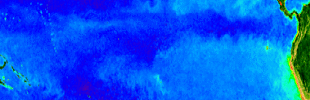 当我们用连续的卫星来看浮游植物和海洋里面的温度变化情况时,我们可以看到海流的状况,比如说暖水的流向,冷水如何翻动。