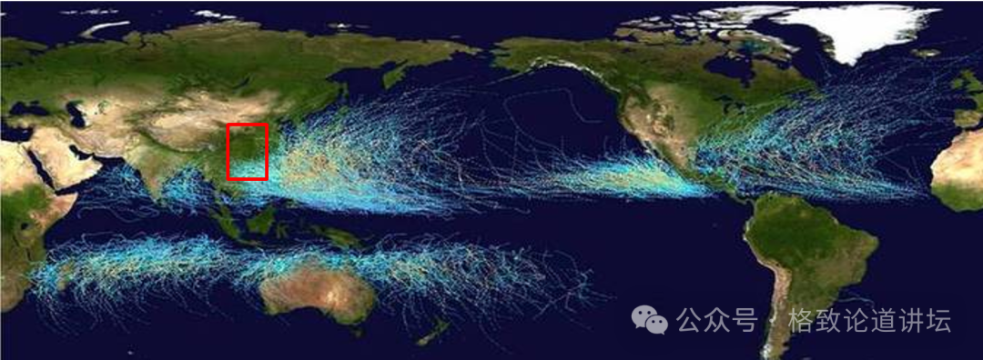 首先给大家看看全球的海洋分布,南海在西太平洋地区,西太的台风跟南海的台风都是很频繁的,所以它给我们提供大量研究台风的数据源。