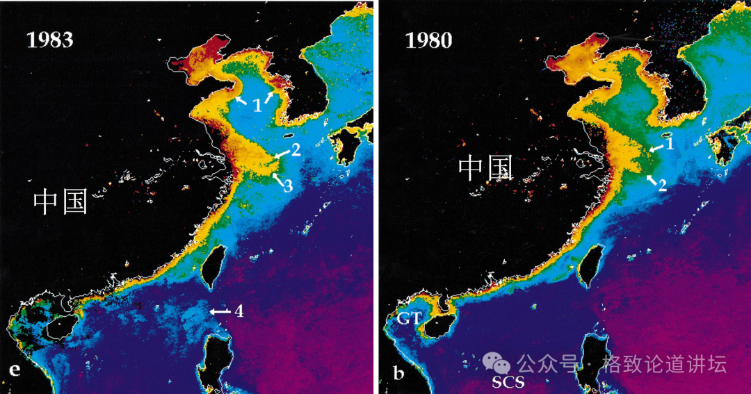 而且也可以很清楚的看到一些局部的,非常漂亮的浮游植物分布。这种研究在过去没有卫星遥感的时候,我们难以做到。