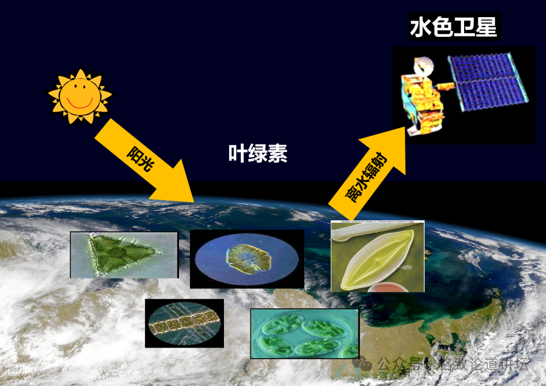 是怎样测量到呢?因为浮游植物体内有叶绿素,叶绿素的含量可以表征浮游植物的量,卫星利用阳光照在浮游植物的叶绿素上,再经过散射,就可以监测到浮游植物里面叶绿素的含量。因此我们就可以知道浮游植物在海洋中的分布、密度、变化等等。