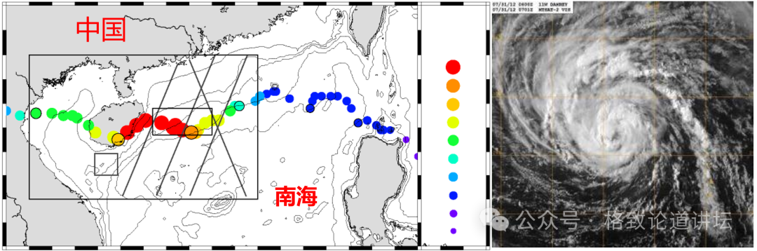 台风跟浮游植物有什么相关性呢?首先我们研究了2005年的达维台风,来自南海海南岛的朋友可能有所了解,当年台风非常强烈,从菲律宾一直横穿到海南岛。