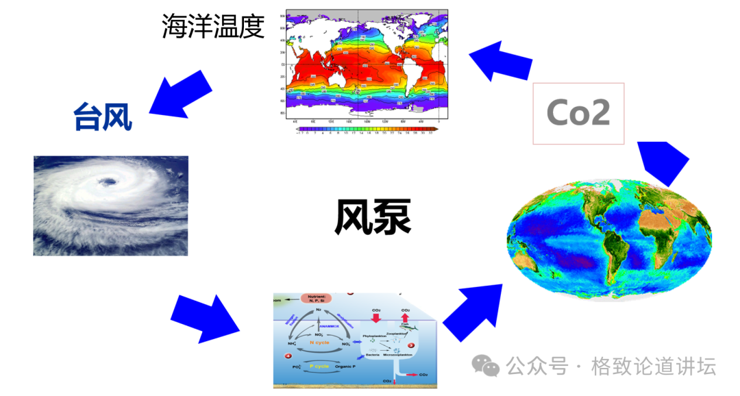 这样我们就提出了一个“风泵”的概念。台风就像一个巨大的风泵,可以把海底深层,富有营养盐的水分,也是比较寒冷的水分泵到海表促进了海洋的初级生产力。这种初级生产力是提供给鱼虾的食物,是食物链的最底端。
