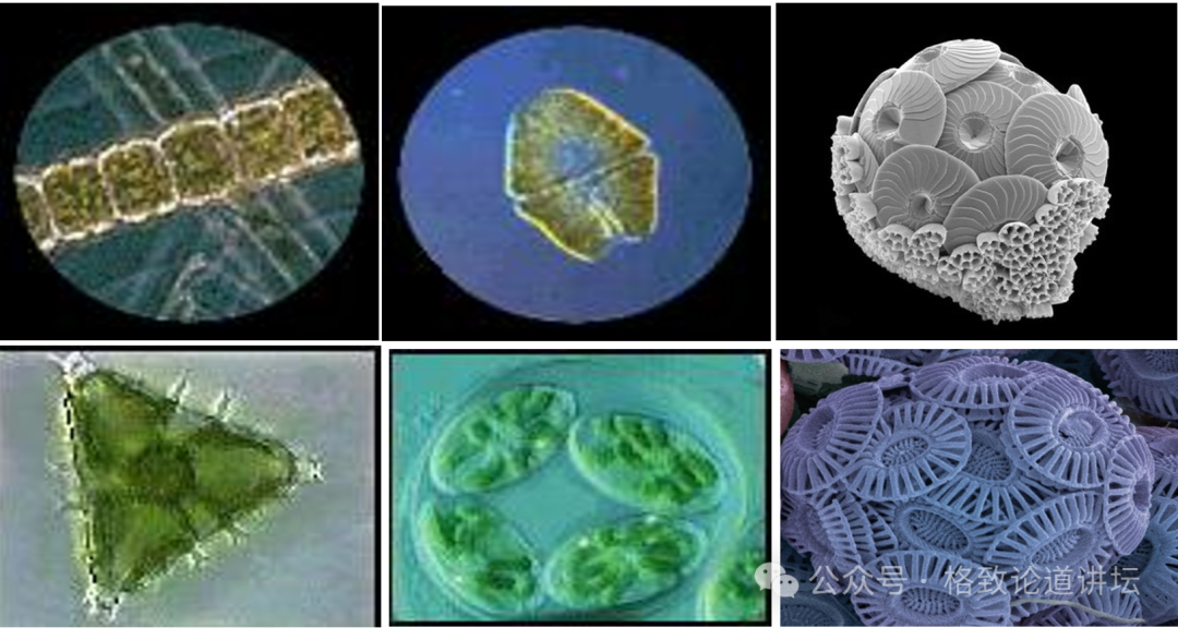 这个就是我们平常研究的,或者是我们大家都知道的浮游植物,体积非常小,看不见的。微镜底下是什么样的呢?