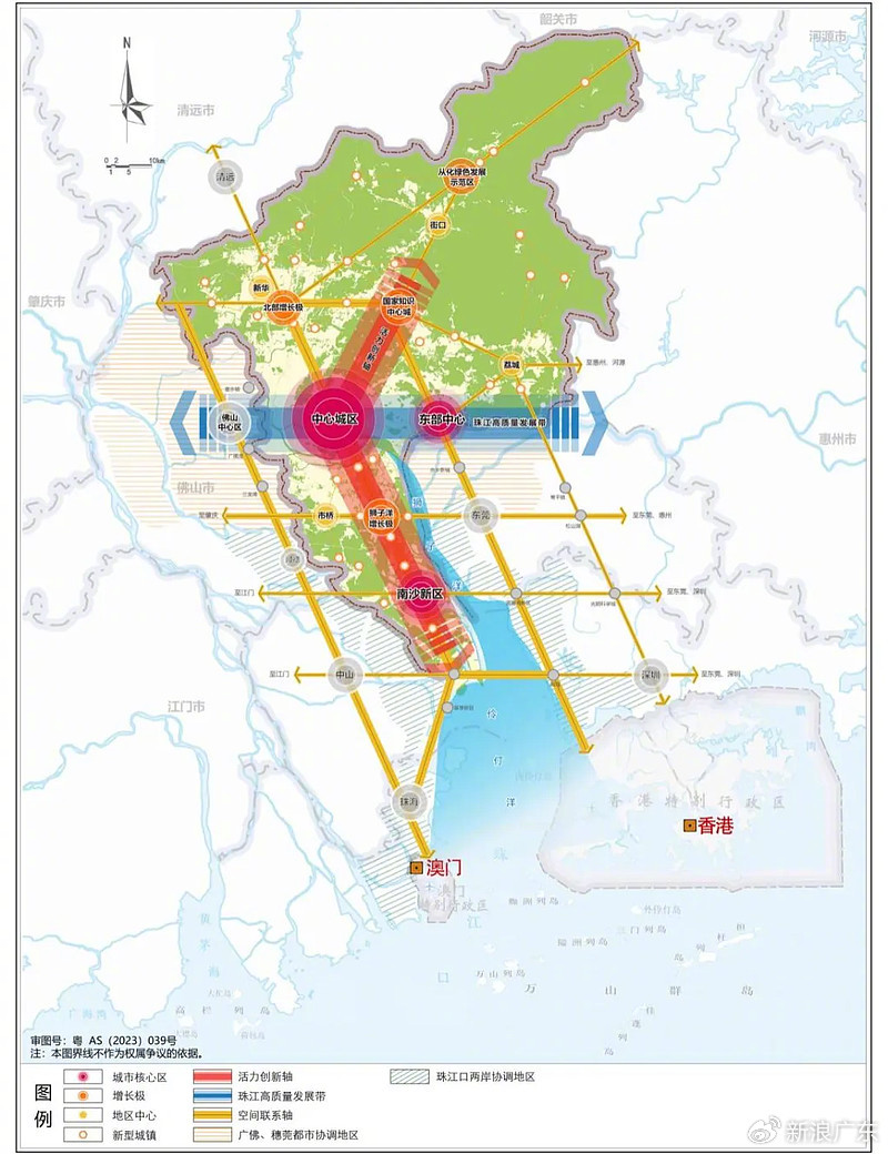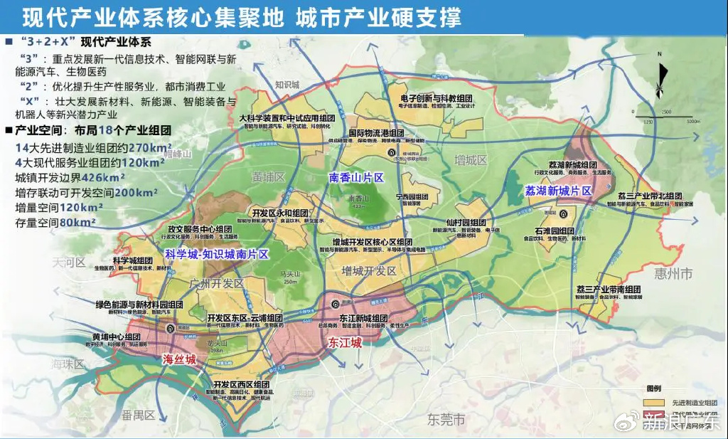 在过去十年的时间里,公众一直对广州向东还是向南发展的问题展开激烈讨论。广州位于大湾区的“A字”顶,而“A字”底也触及海洋。作为全国重要的对外窗口和外贸城市,向海而生自然不用多说。但是,“向东”发展亦是城市能级提升必要之选,因为东部有坚实的人口基础、产业基础、交通基础,而其地理位置更是特殊。“东部中心”紧挨“中心城区”,也是穗莞深三市的重要交集点,更是广州面向粤东,虹吸和辐射华东的重要节点。
