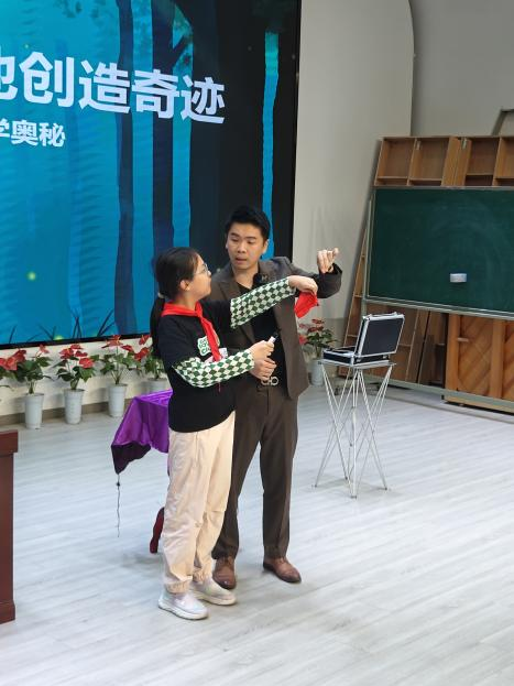 活动开始,“是科学还是魔法”科普秀便以一连串生动有趣的互动问答,瞬间点燃了全场学生的热情。文豪老师以独特的方式将深奥的科学知识与迷人的魔术表演无缝融合,引导学生们深入思考日常生活中那些习以为常现象背后的科学原理。在欢声笑语中,孩子们不仅收获了知识,更体会到了探索未知世界的无穷乐趣。