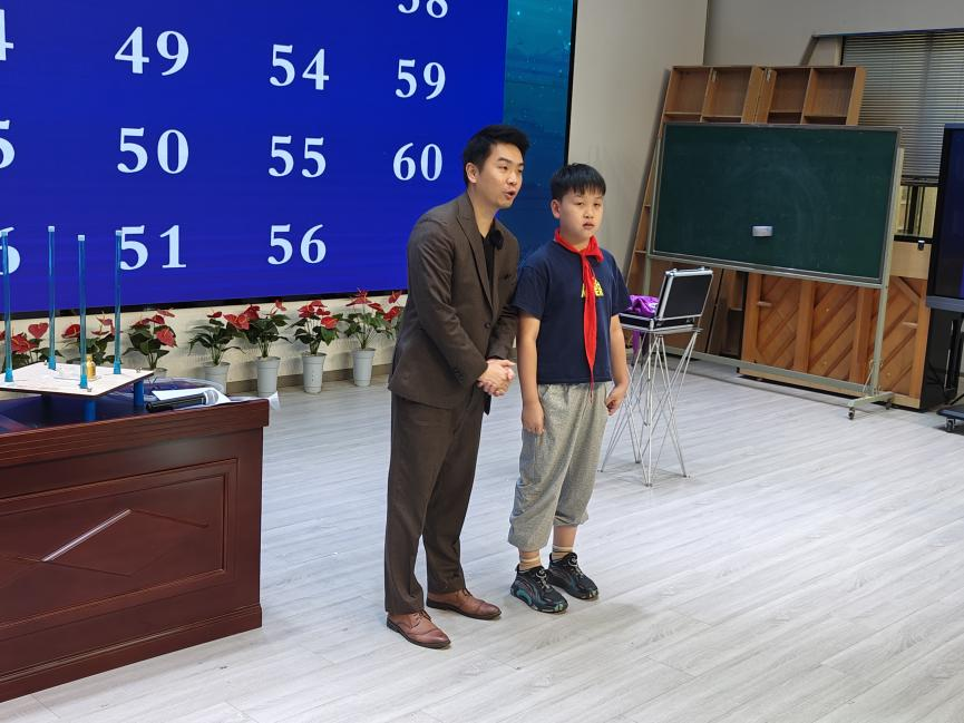 在“探索超能力”环节,文豪老师以“数字读心术”为引子,展开了一场惊心动魄的魔术表演。孩子们的目光紧紧追随每一个细微的动作,试图揭开这背后的秘密。随着魔术的层层递进,文豪老师逐一揭示了其背后的数学奥秘——二进制原理,让孩子们恍然大悟,原来“读心术”的魔力源自科学的智慧。这一转变不仅让孩子们从被动的观赏者成为了主动的探究者,更激发了他们对科学原理的浓厚兴趣。