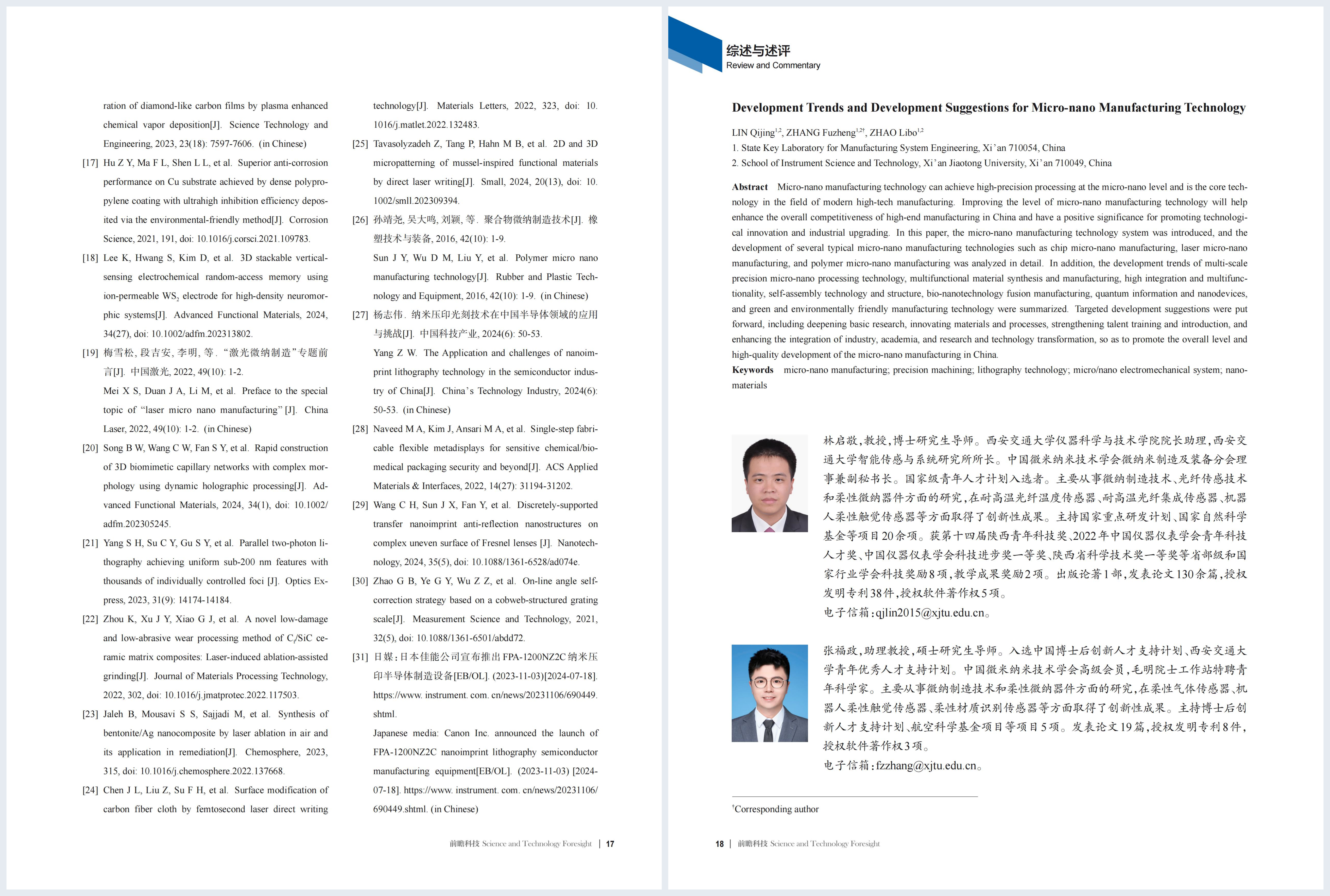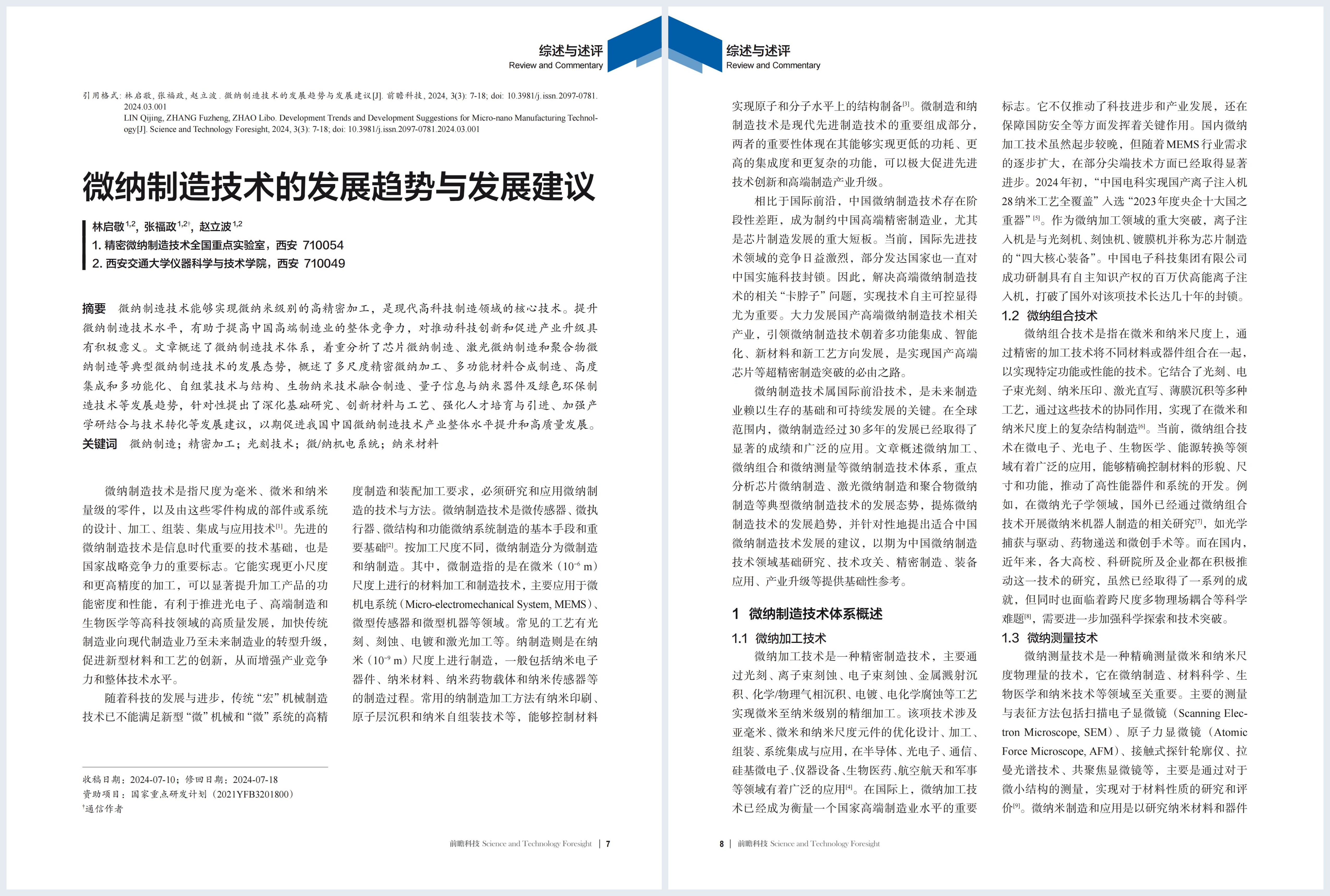 综述与述评 | 林启敬,张福政等:微纳制造技术的发展趋势与发展建议