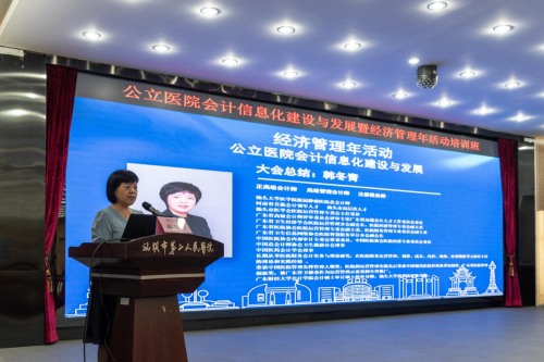 最后,省卫生信息网络协会医院智慧财务审计分会副会长、汕头市医学会医院运营管理专委会主委、汕头大学医学院附属肿瘤医院总会计师韩冬青为本次培训班作总结发言,她指出,公立医院会计信息化建设是医院管理现代化的重要组成部分,是一项长期且艰巨的系统工程,需要医院在预算管理、成本核算、收支管理、采购管理、资产管理及信息化建设等多个方面进行综合管理和技术创新。这次培训班以“经济管理年”活动为契机,紧扣“规范管理、提质增效、强化监督”的主题,探索建立健全以业财融合为核心的运营管理信息集成平台,强化人工智能、大数据、云计算等现代信息技术的应用,提升运营管理精细化水平和效率效益。我们要继续秉持创新、协作的理念,持续加强和促进学术交流与合作,提升医疗服务质量和运营管理水平,助力医疗卫生事业发展迈向新高度,为人民群众的健康福祉做更大贡献。