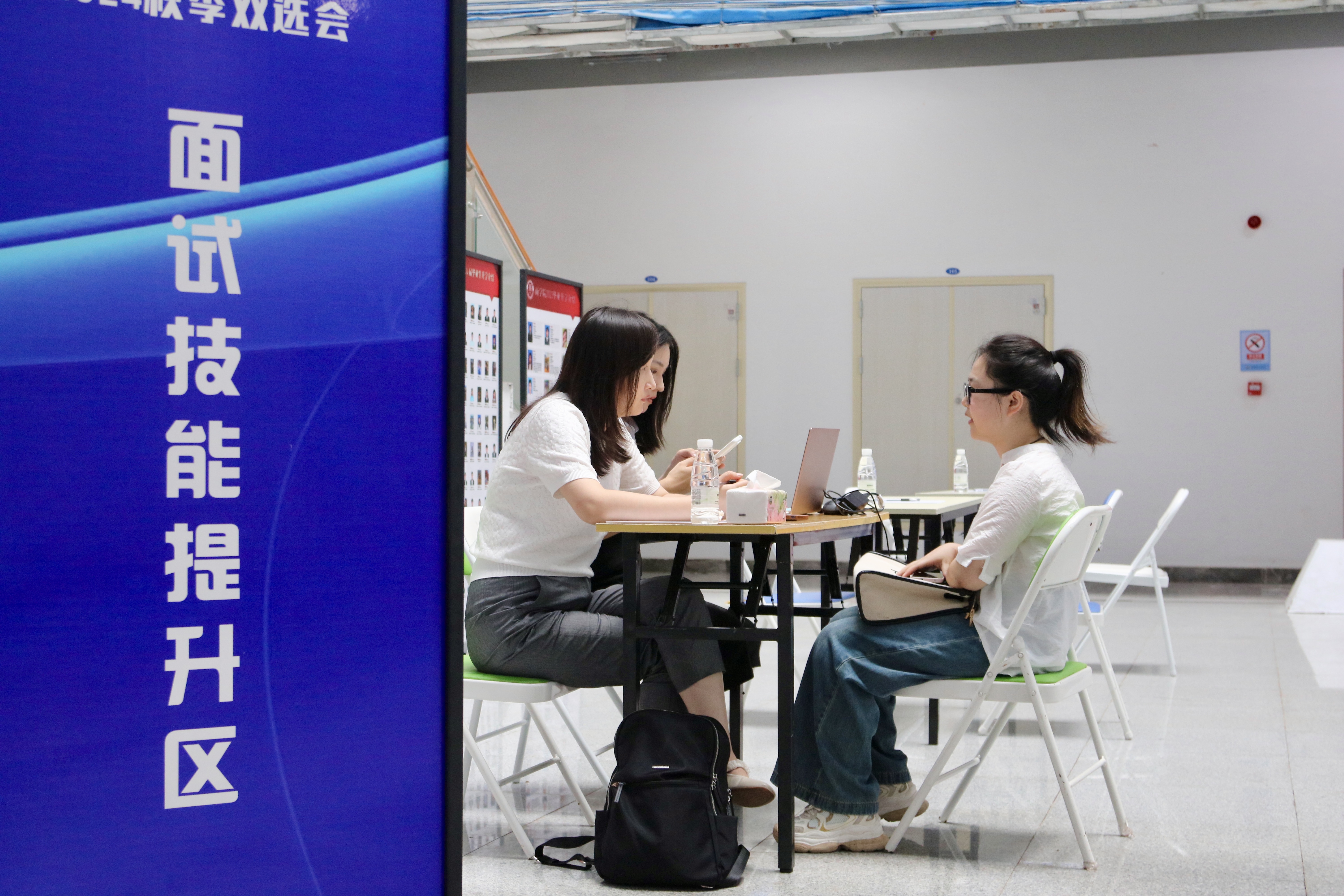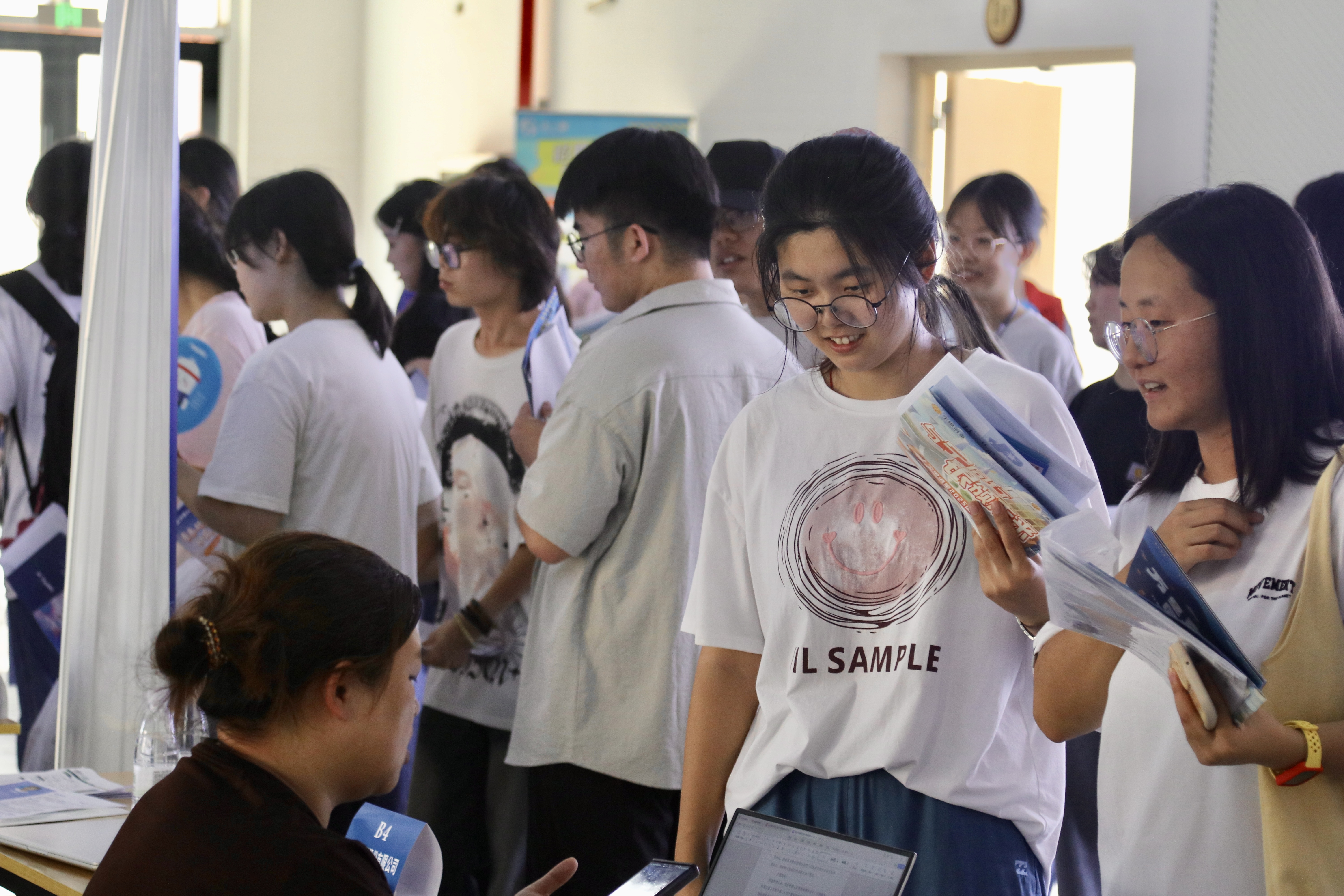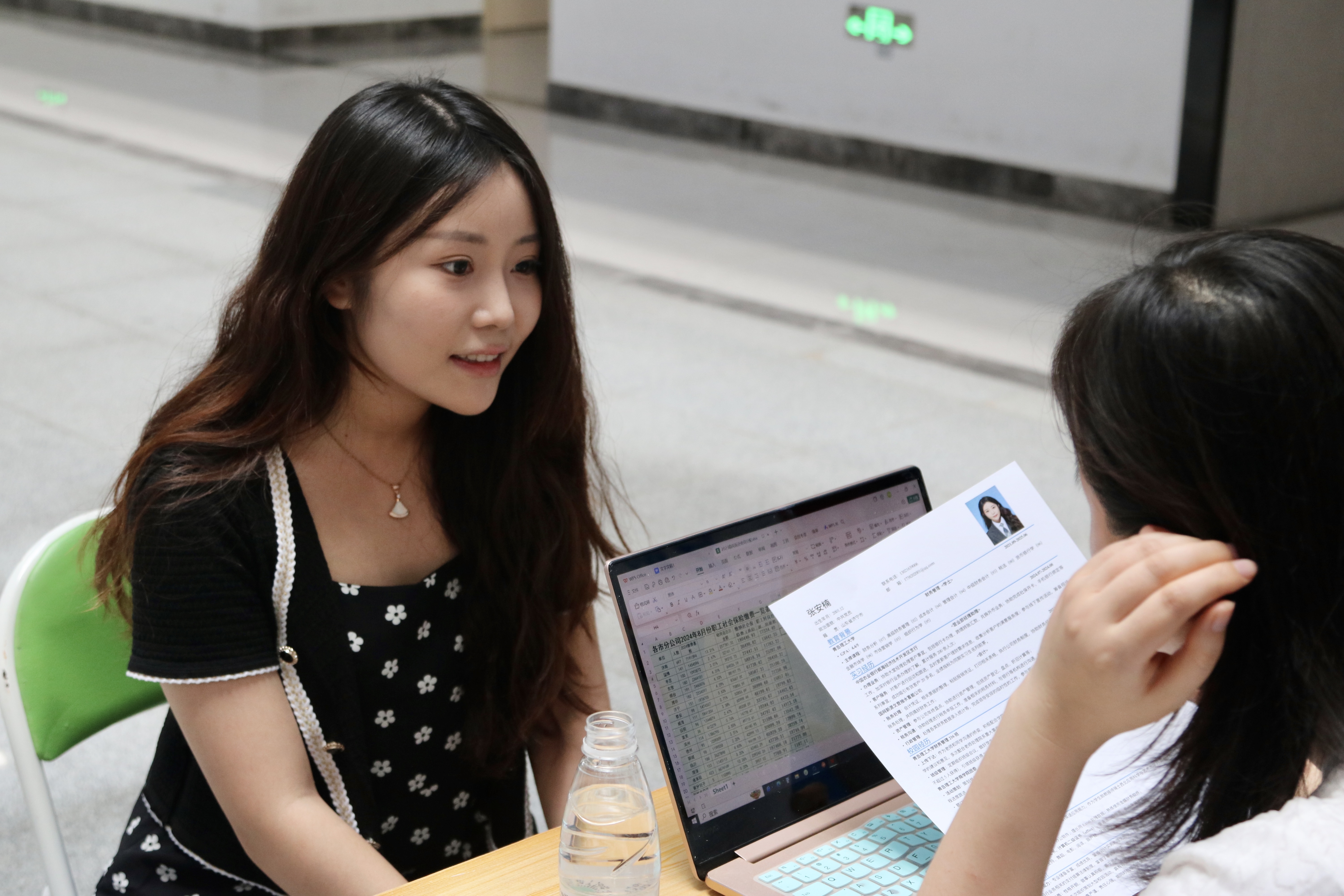 在双选会现场,“一站式”就业技能提升专区还吸引了近200名大一新生携带个人简历与专家进行交流,提前了解招聘、实习需求,掌握就业信息,为未来四年大学生活做好规划。“面试官您好,我叫牟杉,是商学院财管246班的一名新生,我前几天做了一份个人简历,想了解一下可以从哪些方面提高自己,毕业后顺利找到心仪的工作。”学院将职业生涯规划教育前置,积极鼓励大一新生参加本次招聘会,不仅可以让学生提前感受招聘氛围,还可以引导学生完善学涯规划和职业规划,助力学生成长成才。