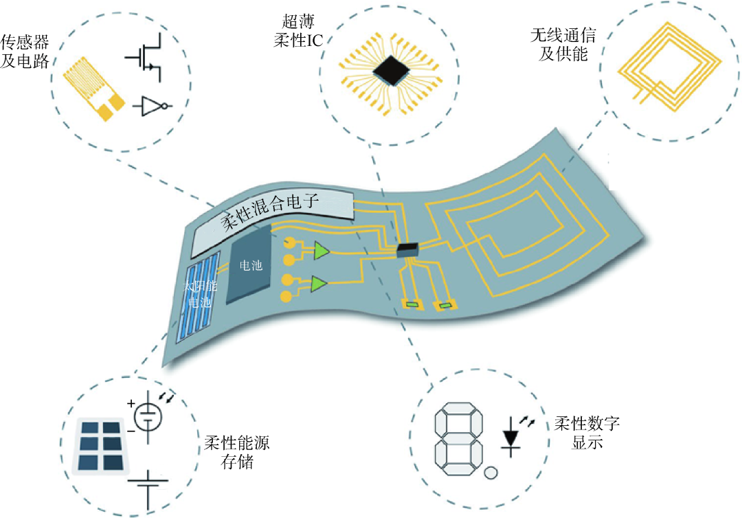 未来,柔性电子技术需要在材料、化学、物理、机械工程、电气工程、生物医学工程、人工智能、大数据等方面进行系统性创新。为应对现代高性能柔性电子或器件的需求,需要重点发展具有长期稳定性的可拉伸电子材料、满足低成本的大规模制造技术、能够实时检测体液中多种不同生物标志物的新型柔性电化学传感器及能够集成多种感觉模式,以实现并行处理、编译和执行的人工存算一体系统等。