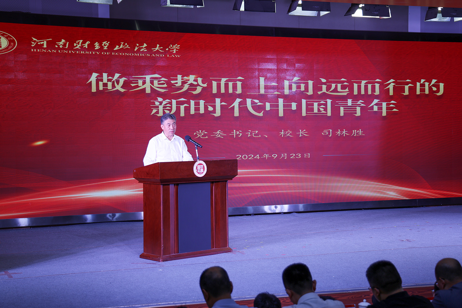 河南财经政法大学党委书记、校长司林胜为新生上思政课