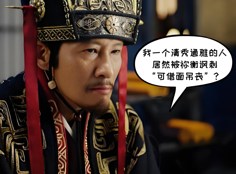 祢衡素有才名,可惜长了张毒舌的嘴。他讽刺陈群和司马朗是“屠沽儿”(即杀猪买酒的人),讽刺荀彧“可借面吊丧”(即徒有虚表的人,史载荀彧“风姿奇表”“清秀通雅”),讽刺赵融“可使监厨请客”(赵融爱吃肉)。每一条评论都短小精悍,伤害性不高,但侮辱性极强。