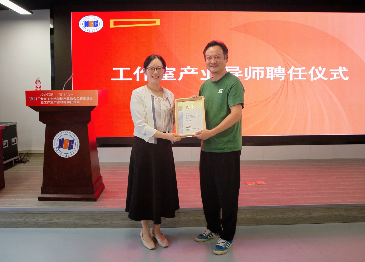 会上,现场还举行了举行工作室产业导师聘任、校企合作协议签署仪式。陆益向33位新聘工作室产业导师颁发聘书,王炳根和企业负责人共同签署校企合作协议。这些工作室产业导师和企业负责人都是来自企业的精英,具备丰富的AI实践经验。他们的加入,将为艺术学院注入强劲的动力。