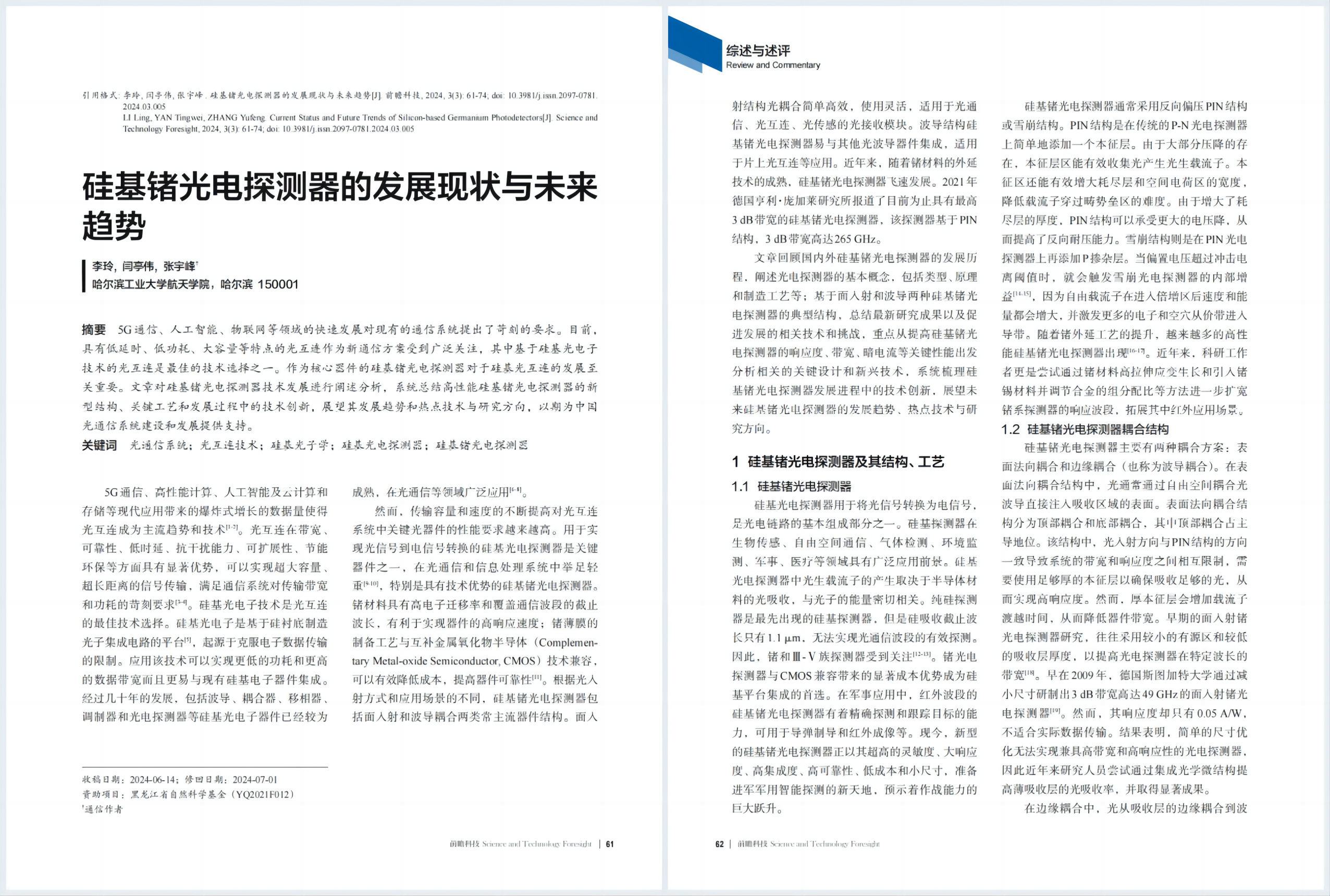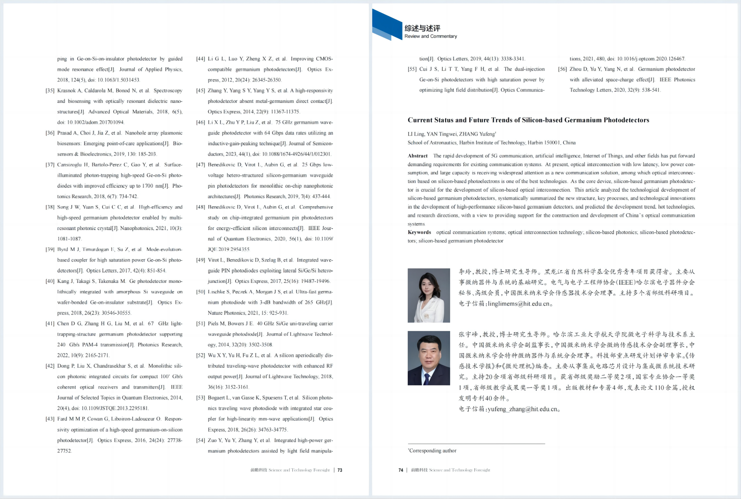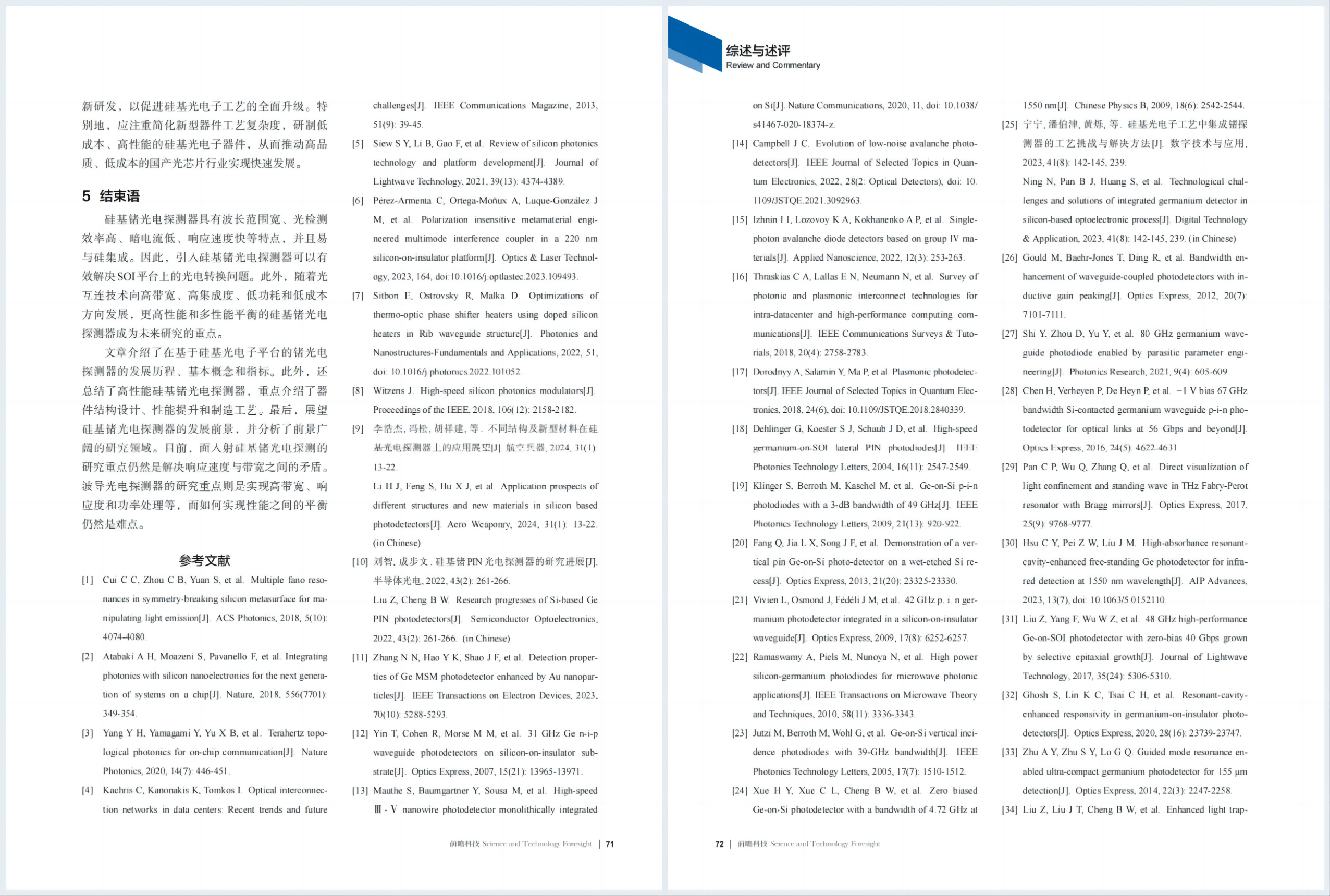 综述与述评 | 李玲,张宇峰,等:硅基锗光电探测器的发展现状与未来趋势