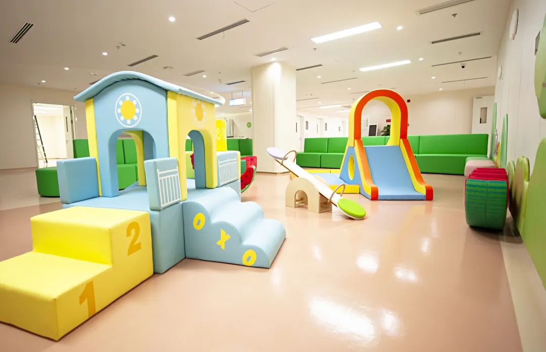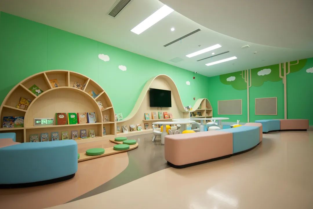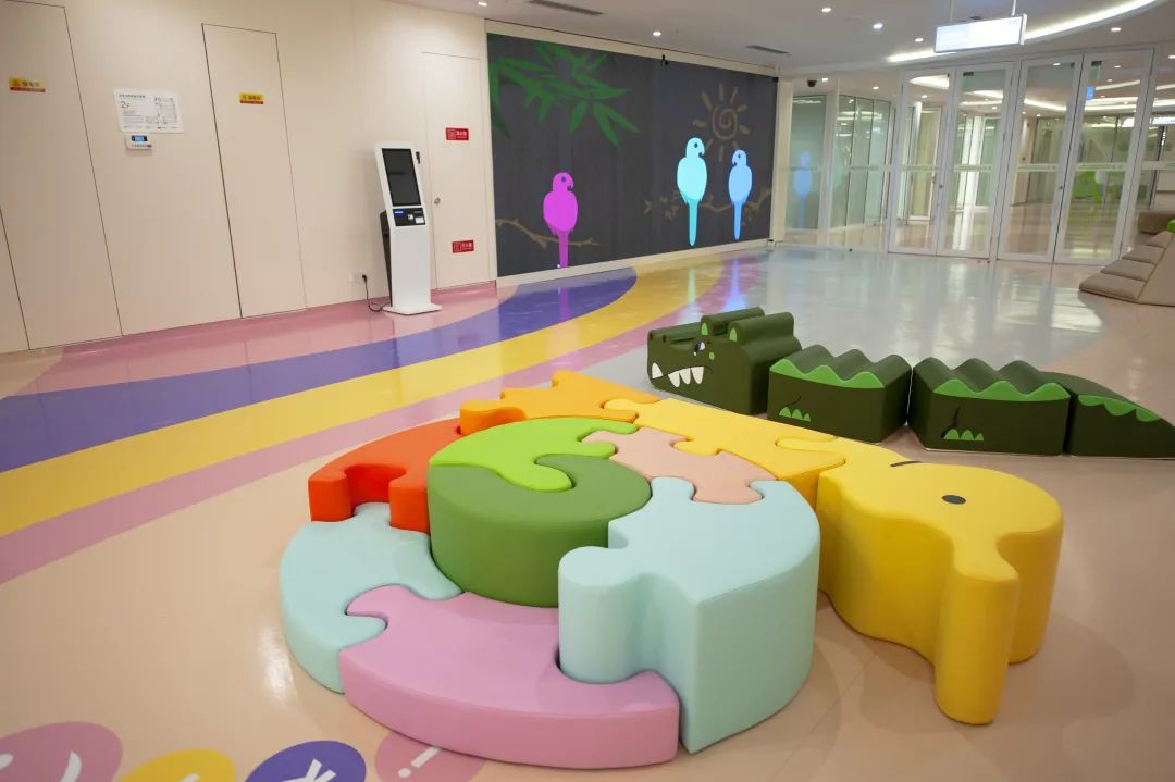 位于二楼的儿童保健科,专门为儿童打造了游乐设施等待区、亲子阅读角和健康知识展览区;