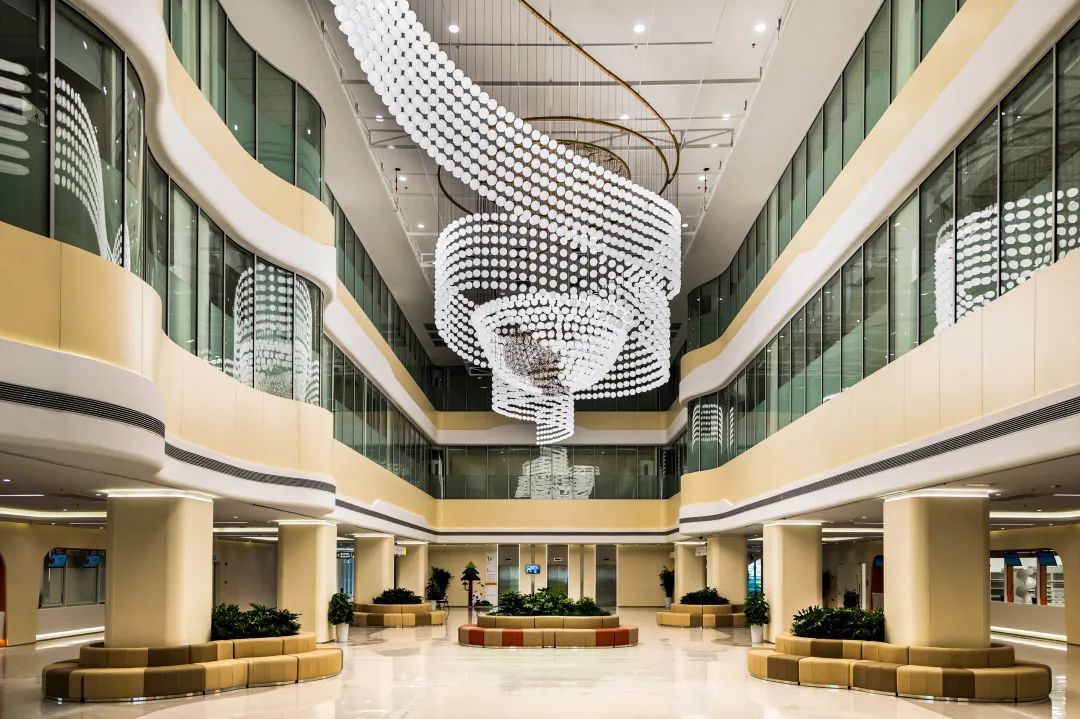 走进医院一楼就诊大厅,迎面便是一方数字大屏,实时滚动着就诊的各类信息,大厅内印有“华西妇幼,健康高新”的导诊台为来此就诊的市民群众提供相关指引。就诊大厅右侧,由4000个灯球组成的熊猫艺术造型灯装置萌趣可爱,让整个空间洋溢着温馨的氛围。