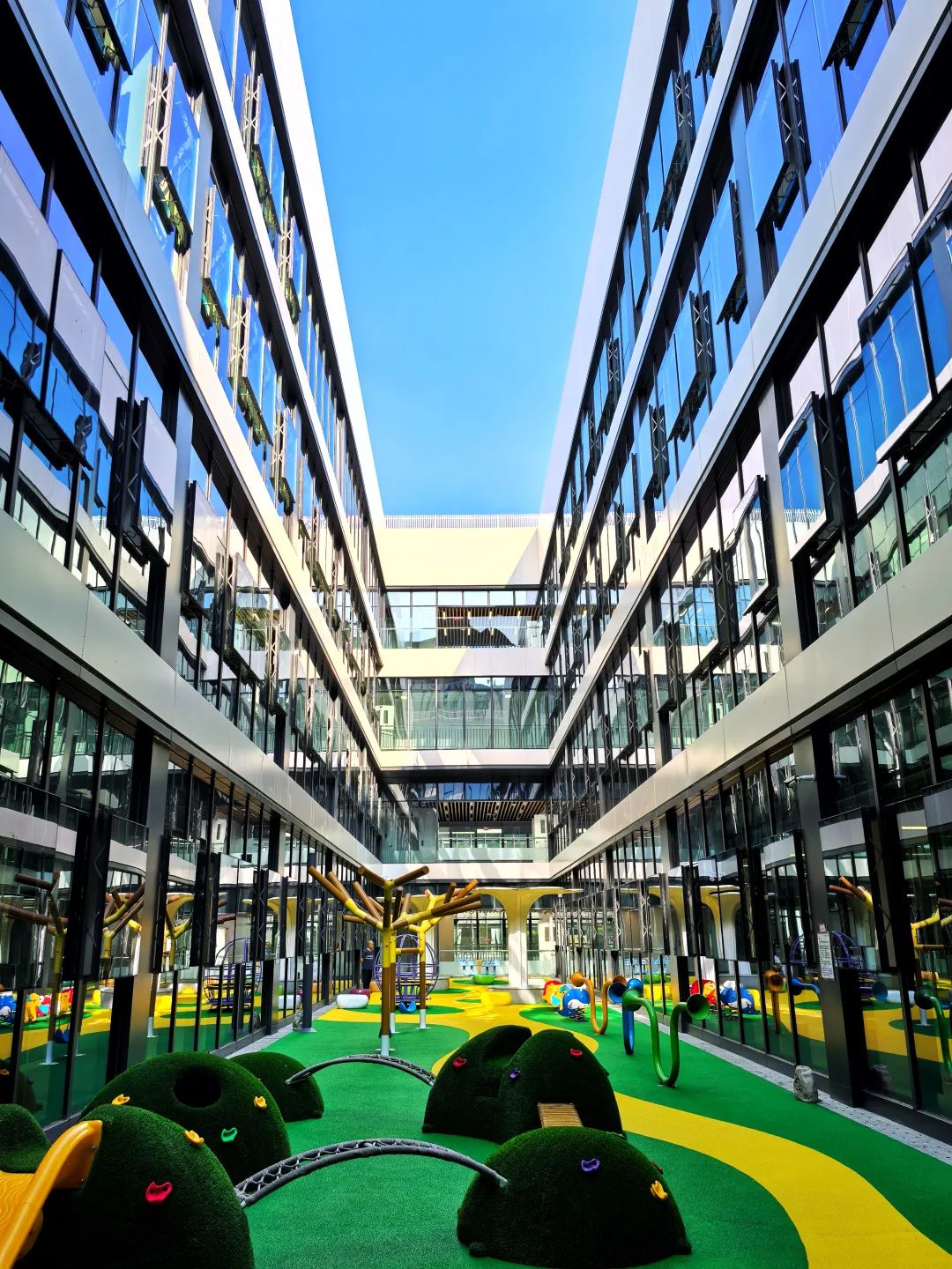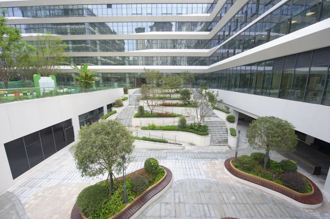 除了别出心裁的室内设计,同样值得一提的还有室外的公共环境。据悉,成都高新区妇女儿童医院遵循“花园式”设计理念,将自然元素与现代医疗设施完美融合。医院内部,二楼与四楼精心规划了中庭花园区域,进一步延展了绿色空间;而六楼的屋顶花园,让患者在就诊之余也能感受到绿意环绕的宁静与舒适。