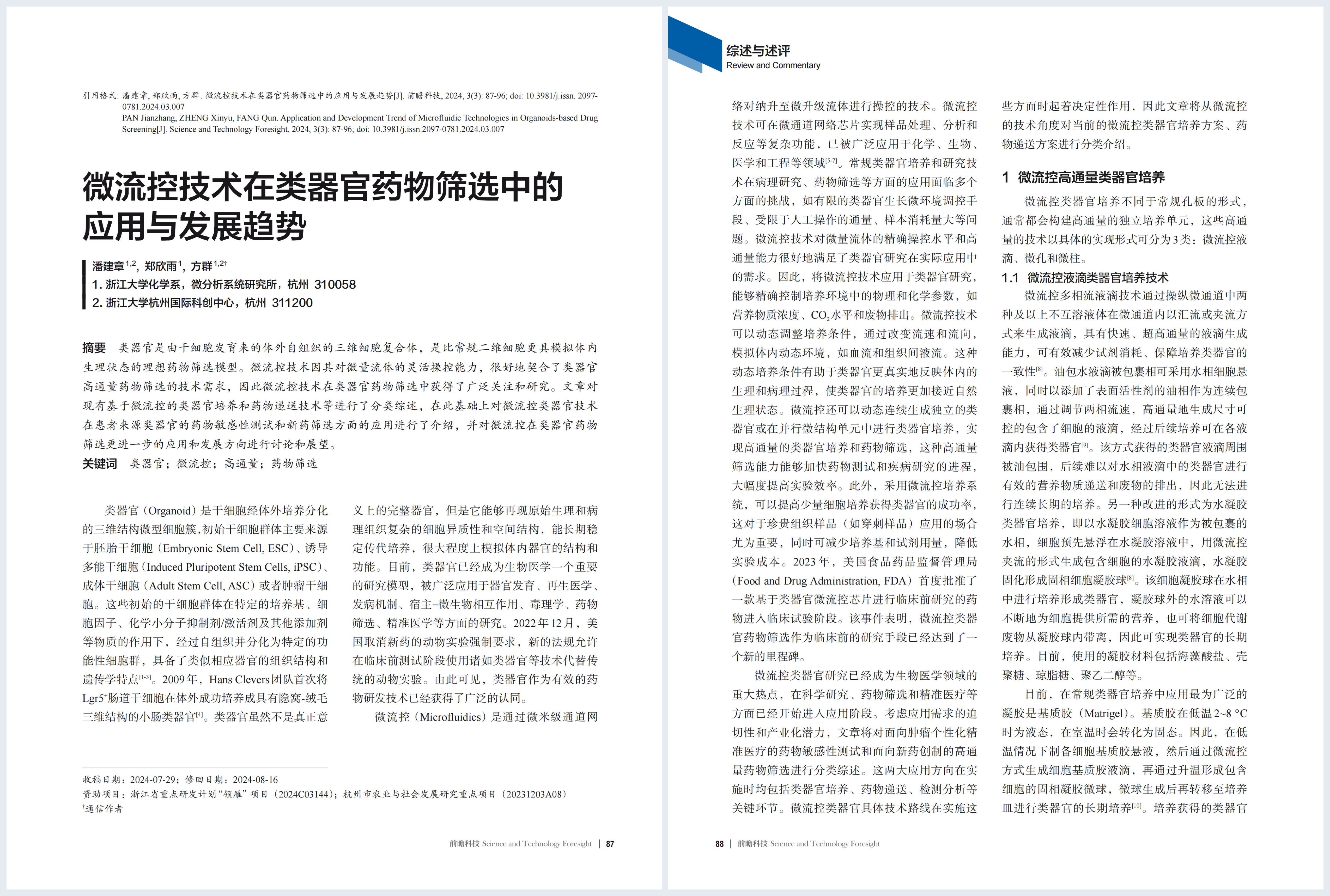 综述与述评 | 潘建章,方群等:微流控技术在类器官药物筛选中的应用与发展趋势