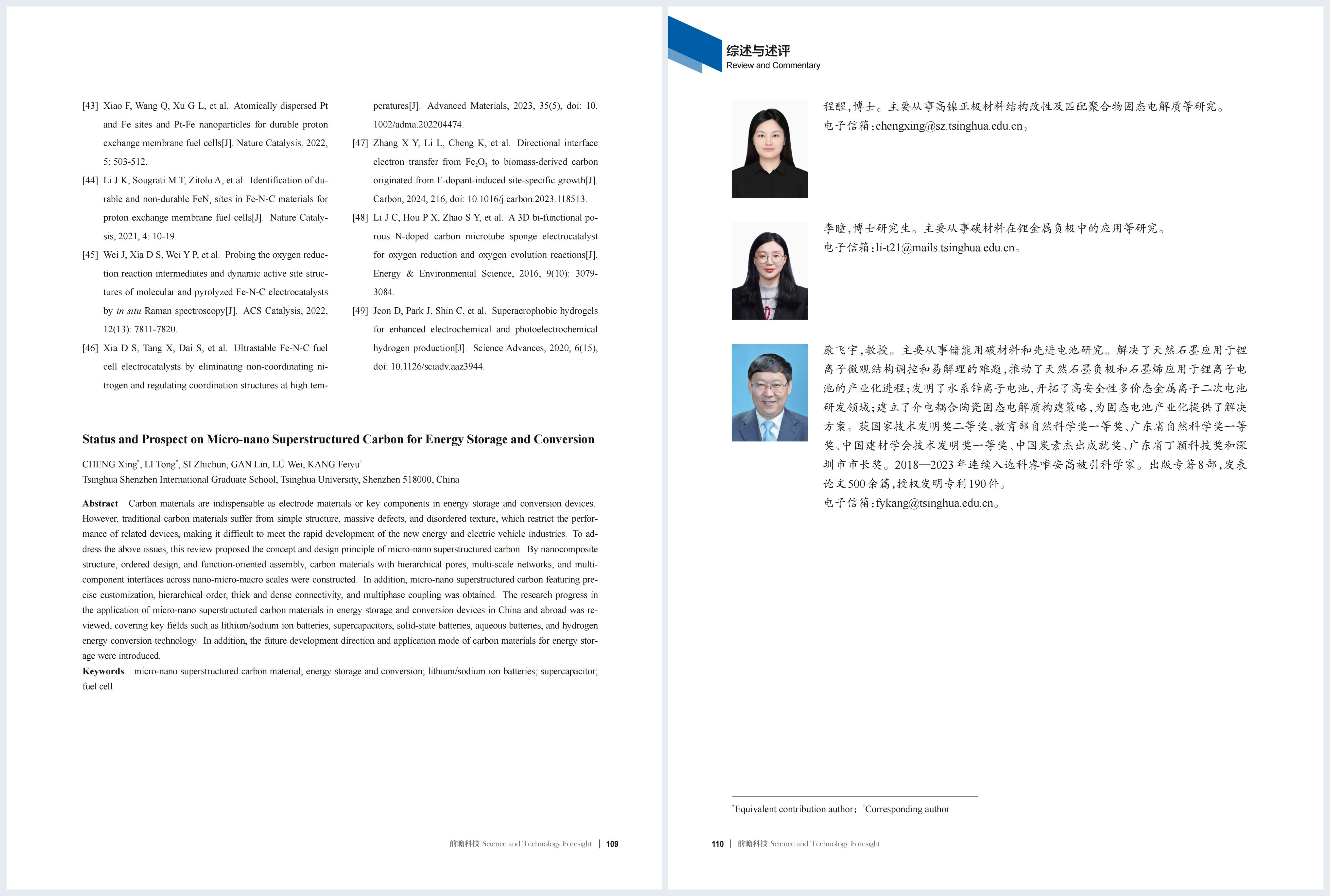 综述与述评 | 程醒,李瞳,康飞宇等:能源存储与转化用微纳超结构碳:现状与建议