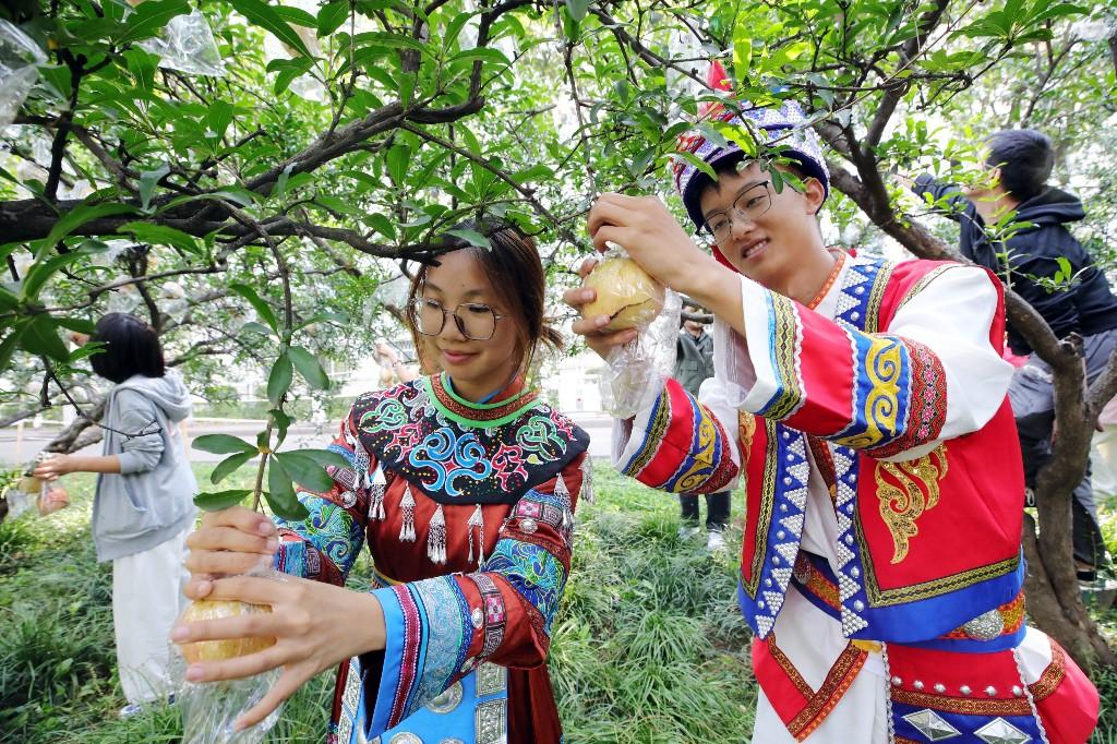 除了石榴采摘争霸赛外,本次以“榴苑同心,共绘梦想”为主题的石榴校园文化节还设置了多个互动环节和体验项目。同学们可以亲手制作石榴汁、石榴冰沙等美味饮品,感受石榴的营养价值;还可以参与石榴知识问答深入了解石榴的文化内涵和相关知识。这些活动不仅让同学们在轻松愉快的氛围中学习了新知识、掌握了新技能,还增进了彼此之间的友谊和合作。