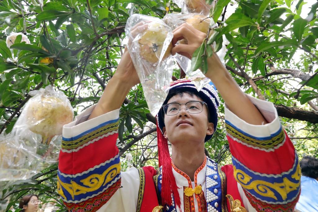 经过40分钟的激烈角逐,紧张的石榴采摘争霸赛落下帷幕。最终,计算机学院的“溜溜秋队”采摘石榴94Kg,凭借出色的表现和丰硕的成果,荣获了“石榴采摘大王”的称号。他们摘得的石榴不仅个头大、色泽鲜艳,而且汁多味甜,赢得了评委和观众的一致好评。其中程国强、唐安东采摘的石榴重量均为0.65Kg,并列第一,获得“石榴王”称号。当日,16支代表队256名选手,总共采摘石榴20000个,学校领导为获奖队伍颁发了荣誉证书和奖品,并对他们的辛勤付出和优异成绩表示了热烈的祝贺和肯定。