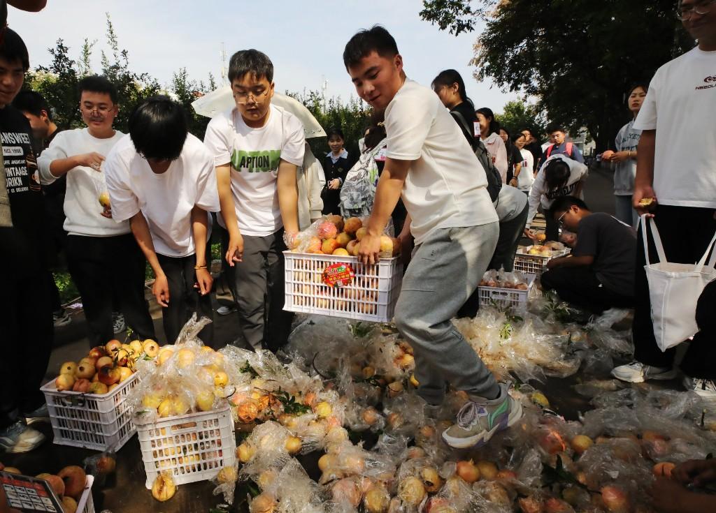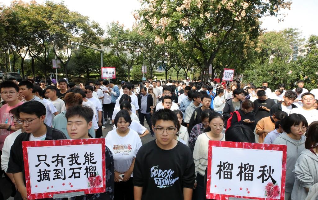 “同学们,石榴采摘大赛现在正式开始!”10月9日中午,秋高气爽,阳光灿烂,随着指挥老师一声令下,一场别开生面的石榴采摘争霸赛在西安科技大学骊山校区石榴园大学生劳动教育基地正式开始。