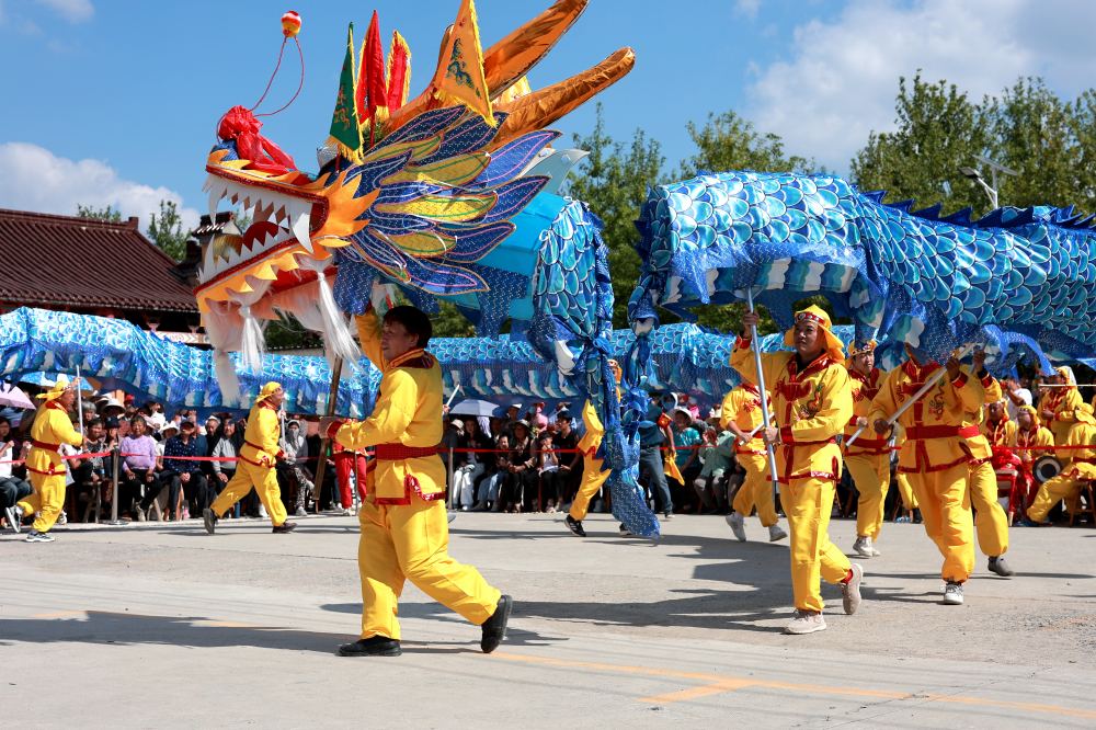 秋高气爽,稻花香里是丰年。在南京市高淳区桠溪街道新墙村花墙门自然村,一场民俗非遗秀热闹上演,时隔41年的“云龙灯”全新亮相,为丰收喝彩,纪念花墙门战斗胜利80周年。