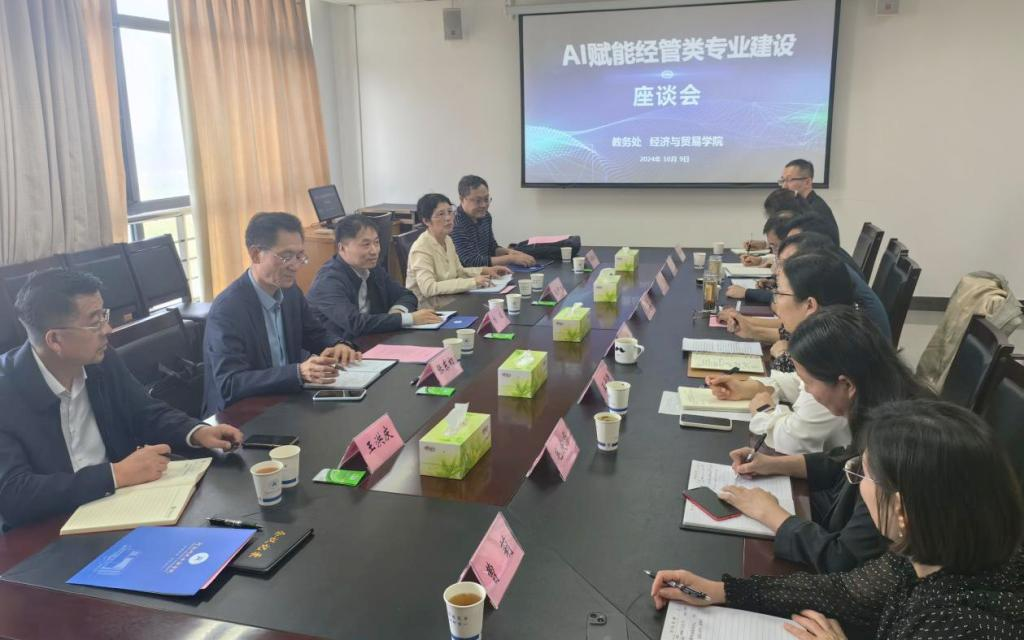 10月9日下午,河南财政金融学院在象湖校区召开AI赋能专业建设座谈会,该校副校长杨波、中原科技学院副校长张东初教授、河南师范大学商学院胡国恒教授、河南工业大学经济贸易学院孙中叶教授、河南财经政法大学国际经济与贸易学院院长王洪庆教授出席会议,共同探讨AI赋能经管类专业建设的新方向及新路径,积极推进AI赋能经管类专业建设。该校教务处、经济与贸易学院负责人及相关教师参加了会议。座谈会由杨波主持。