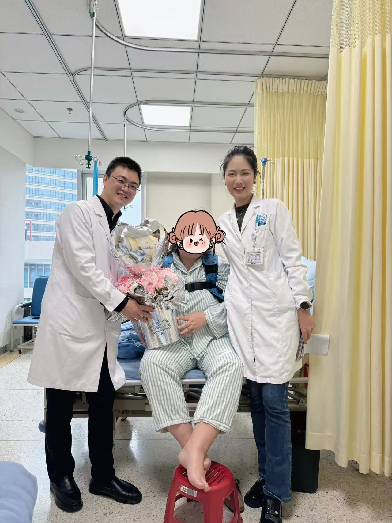 “手术是我们为胖友重塑健康的方式,但更重要的是在这重要的时刻让胖友感受到我们的温暖和支持。”杨医生说。为了让这份心意更具仪式感,第二天查房时,杨华武医生带领团队,手捧鲜花,亲自为患者送上了生日祝福,象征着他们对患者健康与幸福的美好祝愿。
