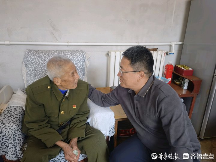 在济南市莱芜区方下街道李家义村,邹法明虽然已经年过百岁,但老人精神矍铄,干净利索。看到一行人进屋,说啥也要支撑着站了起来,尽管大家一再说“不用站,不用站”。
