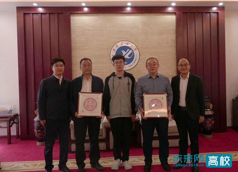 10月11日下午,西安石油大学建校73周年校庆日前夕,石油工程学院2023级学生、陕西省非物质文化遗产——长安瓦当制作技艺继承人李瑞林同学向学校敬赠亲手制作的印有“好学力行,自强不息”校训的瓦当拓片。学校党委书记常江、校党委副书记程永清、副校长赵健在鄠邑校区图书馆接待室接收赠礼,并与李瑞林同学亲切交流。
