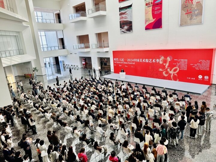 10月9日,由《中国美术报》社、南通市委宣传部、南通大学主办,南通市文化广电和旅游局、南通市文联、南通大学艺术学院承办,南通市美协、南通文体会展管理有限公司协办的“时代·人民——2024中国美术报艺术季”开幕式在南通美术馆举办。此次活动以“一报”联合“一校”联动“一城”,于9月至11月底在南通美术馆、南通博物苑、南通大学艺术学院美术馆、南通市个簃艺术馆、南通现代美术馆、南通五三美术馆等场馆,以主题展、单项展、平行展、外围展、学术研讨会等形式,用19个展览、1000余名艺术家的2000余件艺术作品倾力打造一个美术的嘉年华。
