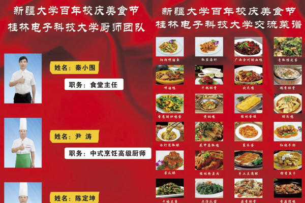 近日,桂电后勤处厨师团队一行四人应新疆大学邀请,参加该校举办的百年校庆美食交流活动。