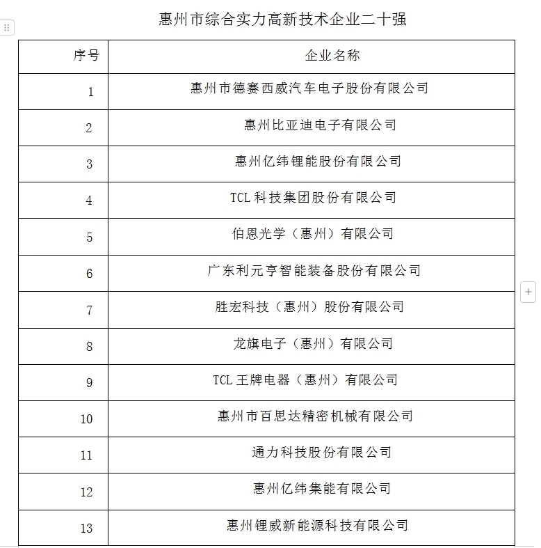 惠州市综合实力高新技术企业二十强颁奖。