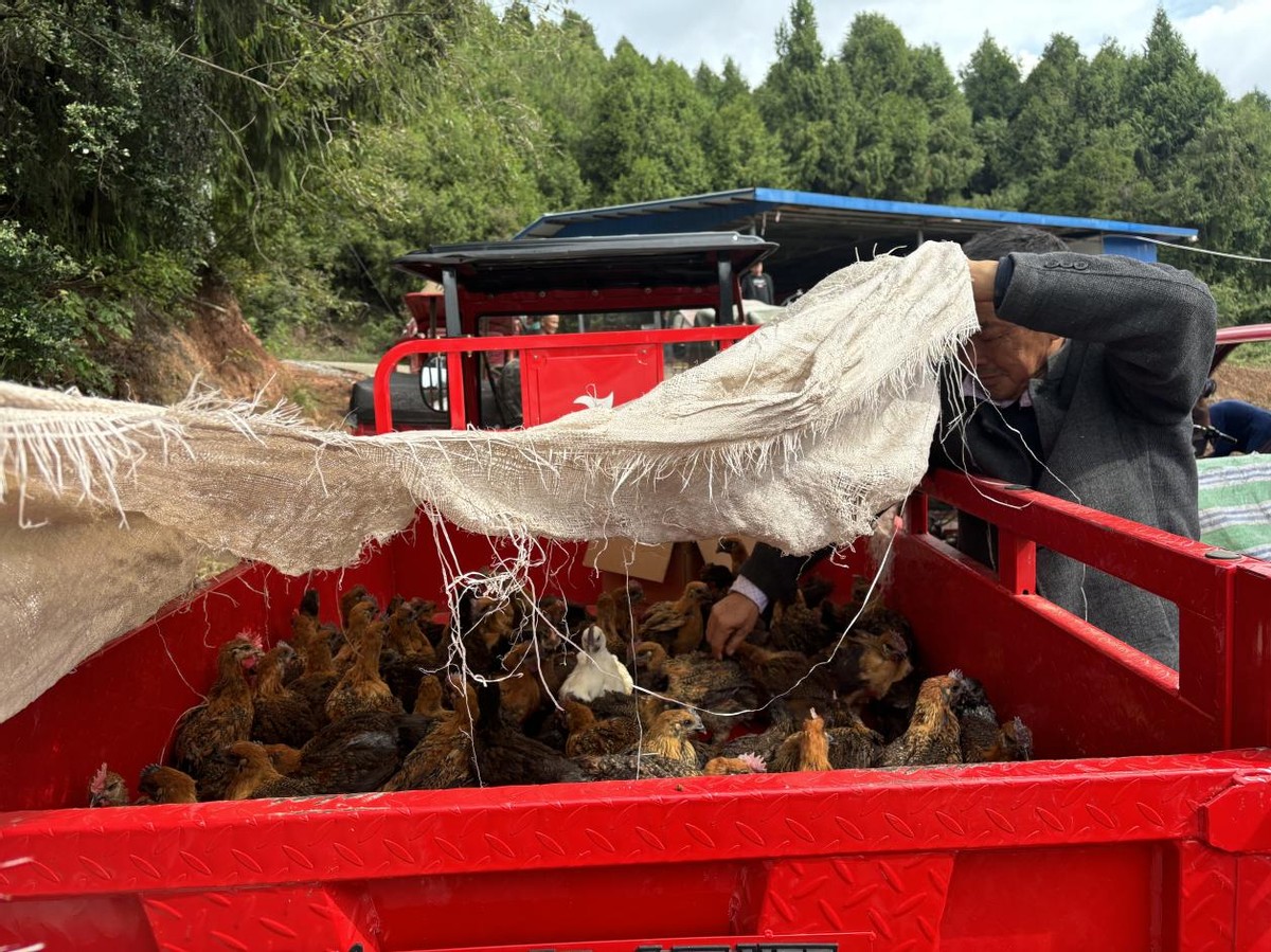 “我们按照公司+村股份经济合作社+农户的养殖模式,其中,泸州市乌蒙山供销合作社将在发放和回收时,按照一只鸡1元的价格返给村集体经济,今天预计发放2000只鸡苗,这笔资金将用于村集体基础设施建设。”苍溪县五龙镇嘉龙村村党总支书记牟勇军说。
