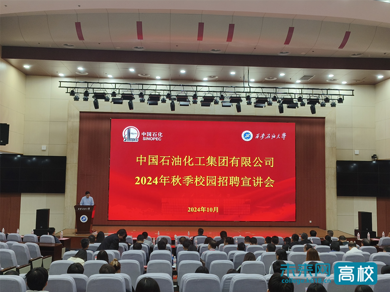 10月15日,中国石油化工集团有限公司(以下简称“中国石化”)2024年秋季校园招聘宣讲会在西安石油大学鄠邑校区隆重举办。来自全国中国石化39家单位的百余名招聘代表,西安石油大学就业创业指导中心全体成员,各院(系)学生工作主要负责人,全体2025届毕业班辅导员,毕业生代表300余人参加宣讲活动。