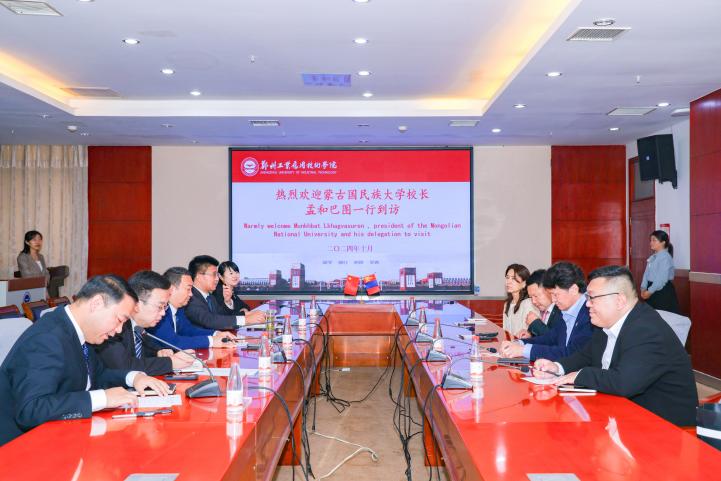 10月14至15日,蒙古民族大学董事会主席、校长孟和巴图(MUNKHBAT LKHAGVASUREN),副校长朝格图格日勒(TSOGTGEREL BAYANJARGAL),中蒙合作部主任旭仁花和中国办事处主任刘彦钧一行到郑州工业应用技术学院访问,并签署合作协议。中原华信控股集团副总裁、郑州工业应用技术学院理事长谷建光,校长闫兵会见考察团一行。副校长贾圣强,工会主席、校长助理、党政综合事务部部长高红艳,国际交流处等有关部门负责人参加会谈。