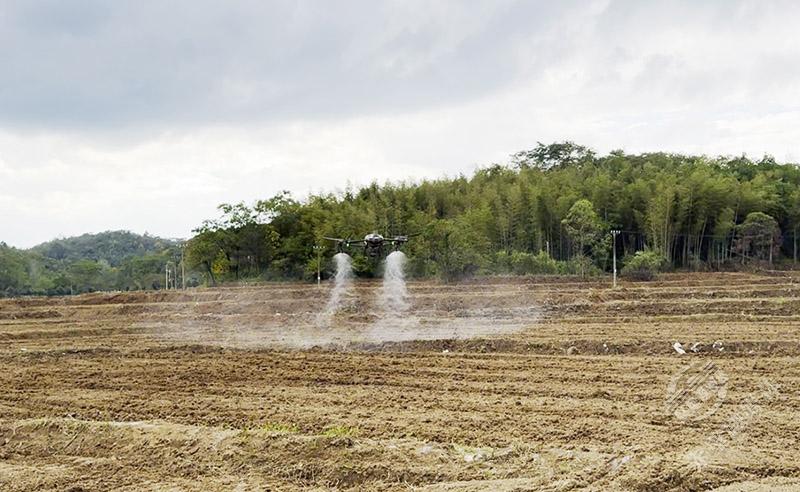 10月17日,在茶庵岭镇金峰村,田间地头机器轰鸣,翻耕机、挖掘机来回穿梭,掀起了秋播油菜的热潮。另一边,一台无人机正在给播种完的油菜田喷施封闭除草剂,为油菜良好生长保驾护航。