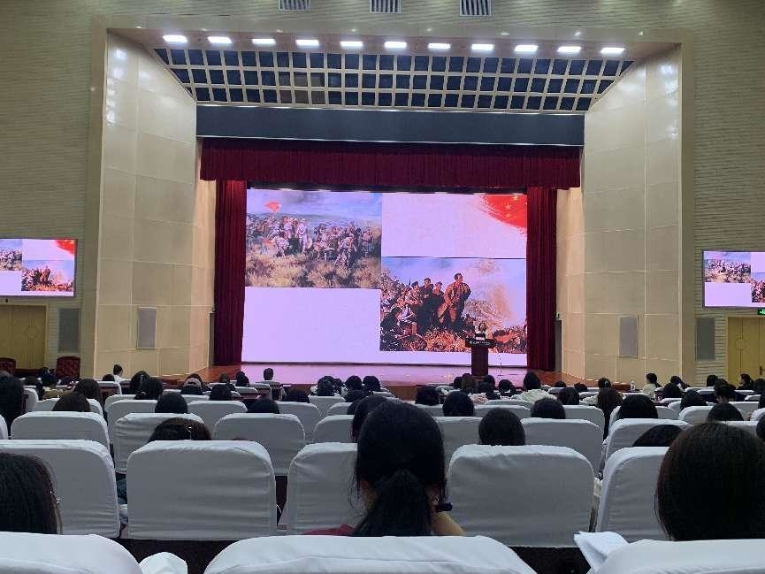 2024年10月16日下午,江苏护理职业学院特别邀请了恩来干部学院青年教师刘玮在学校学术报告厅为师生开展了一场别开生面的《经典回响 感悟伟人风范》思政大课,充分发挥“大思政课”在铸魂育人中的重要作用,传承好红色基因,教育引导学生坚定理想信念、增强使命担当、争做时代先锋。