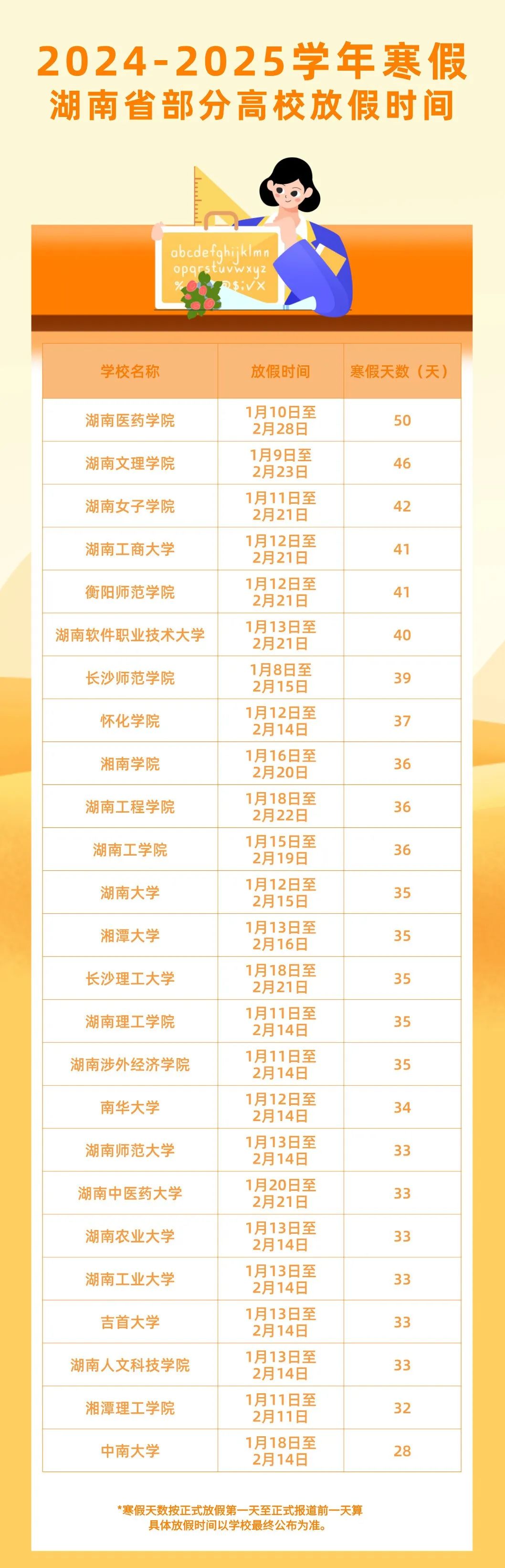 湖南高校寒假长短差异较大