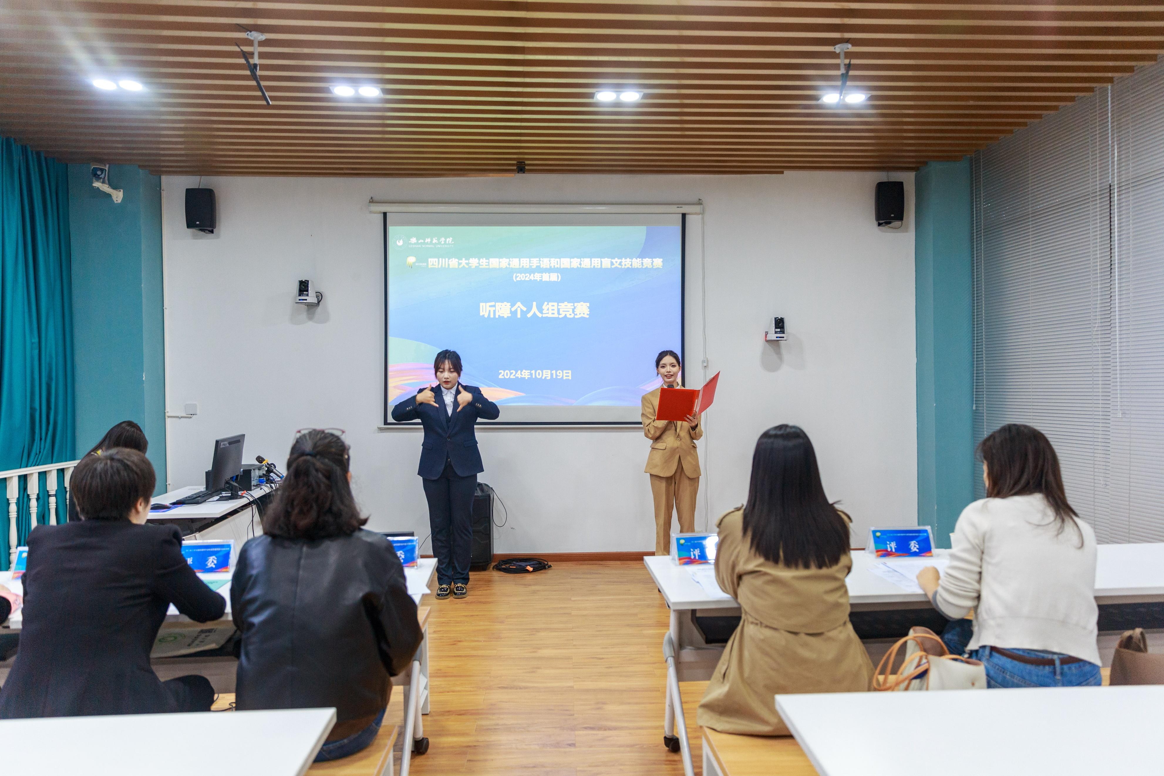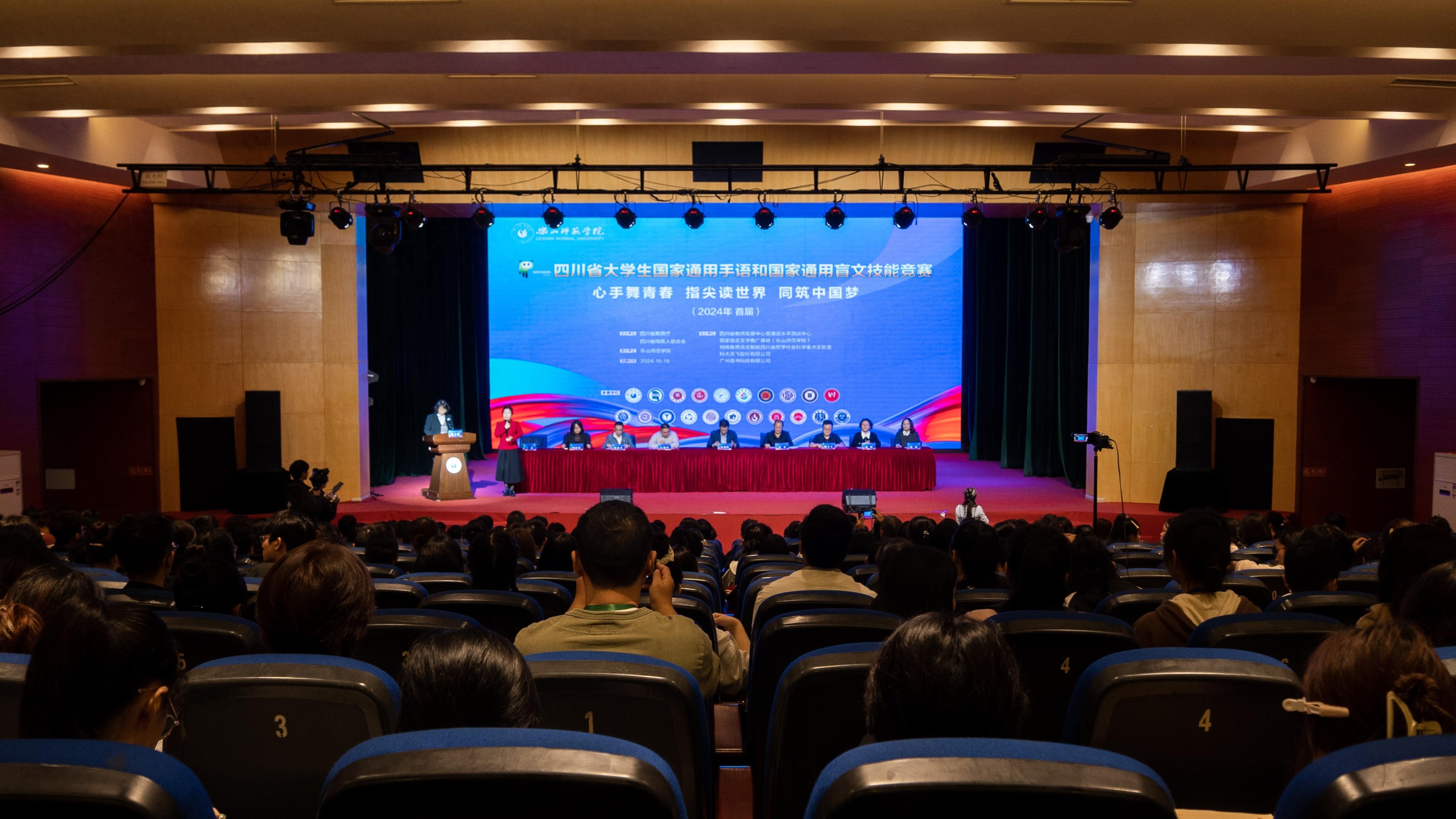 以心手舞青春,用指尖读世界。10月19日,由省教育厅、省残联主办,乐山师范学院承办的2024年首届四川省大学生国家通用手语和国家通用盲文技能竞赛在我校开赛。来自川渝地区的乐山师范学院、重庆师范大学、四川师范大学、西华师范大学、成都大学、四川文理学院、雅安职业技术学院、成都锦城学院等21所高校,300多名选手同场竞技。
